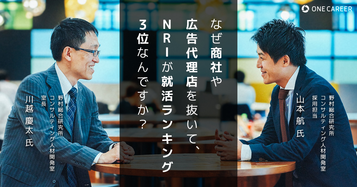 ワンキャリアが発表した「就職人気ランキング」でマッキンゼー、BCGに次いで3位、日系企業では堂々の1位に君臨した野村総合研究所(NRI)。学生の間でもNRIの「隣人の構造面接」や「リベンジ制度」など特徴的な選考が話題になり、夏のインターンには100人の募集に数千人の応募が殺到する程の人気です。