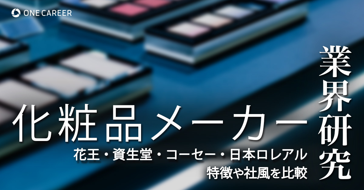 <目次> ●化粧品メーカーとは? 事業内容/提供サービスを解説 ・事業内容 ・ビジネスモデル ●化粧品メーカーの業界動向 ・全体の動向 ・スキンケア業界の動向 ・メイクアップ業界の動向 ・ヘアケア業界の動向 ・ボディケア業界の動向 ●化粧品メーカーの仕事内容・主な職種 ・販売職(美容部員) ・営業職 ・広報職 ・マーケティング職 ・商品企画職 ・研究開発職 ・生産・品質管理職 ●化粧品メーカー業界大手4社の業績比較・ランキング(売上高/営業利益) ●化粧品メーカー業界大手4社の特徴・強み ・花王:「理性の花王」首位の貫録 ・資生堂:さらなる成長に向け、柔軟な対応で立て直し図る ・コーセー:独自のブランド戦略によりロングセラーブランドを多数保有 ・日本ロレアル:既成概念にとらわれない発想と分析力を持つ ●化粧品メーカー業界大手4社の社風の違い・制度 ・花王:優等生ゆえに生まれた、過剰に焦らない穏やかな社風 ・資生堂:アグレッシブで明るく、協調性を重んじる文化 ・コーセー:少数精鋭、安定した労働環境 ・日本ロレアル:感性を尊重する社風 ●化粧品メーカー業界大手4社の平均年収・平均年齢・平均勤続年数 ●化粧品メーカーで働く魅力・やりがい ・日常的に使われるものづくりに携われる ・トレンドに敏感でいられる ●化粧品メーカー業界大手4社の選び方 ・自己分析で自分の強みや価値観を洗い出そう! ・情報収集ではワンキャリアの【選考対策ページ】を有効活用しよう! ・ワンキャリア公式YouTubeチャンネル『【公式】ワンキャリアライブ』を活用しよう! ・手間がかかる「業界研究」はワンキャリアにおまかせ! ・企業研究を効率よく進めたい方には「合格の秘訣」がおすすめ! ・就活の軸を見つけ、自分の価値観を整理しよう ●化粧品メーカー業界大手4社が求める人物像・選考対策 ・化粧品メーカーが求める人物像 ・化粧品メーカーの選考対策 ●化粧品メーカー業界以外の業界研究記事