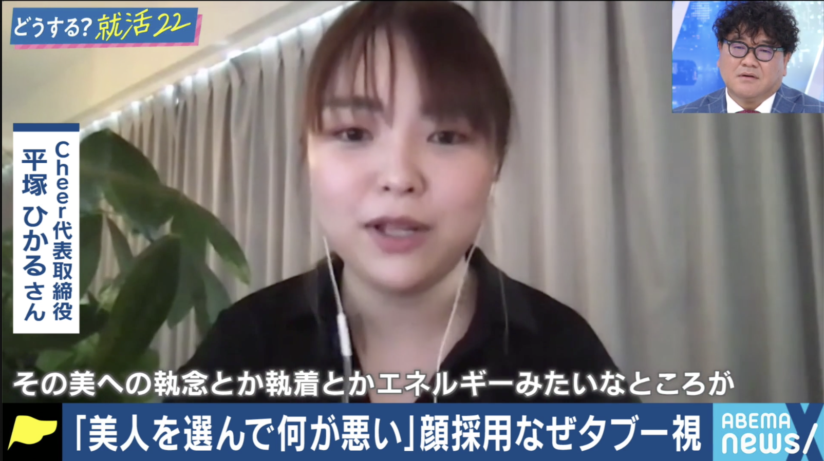 「美人を採って何が悪い? っていう思いが大きい」。いわゆる「顔採用」がタブー視されることに疑問を呈するのは、ベンチャー企業に特化した就活サイト『CheerCareer』を運営するCheerの平塚ひかる代表取締役。