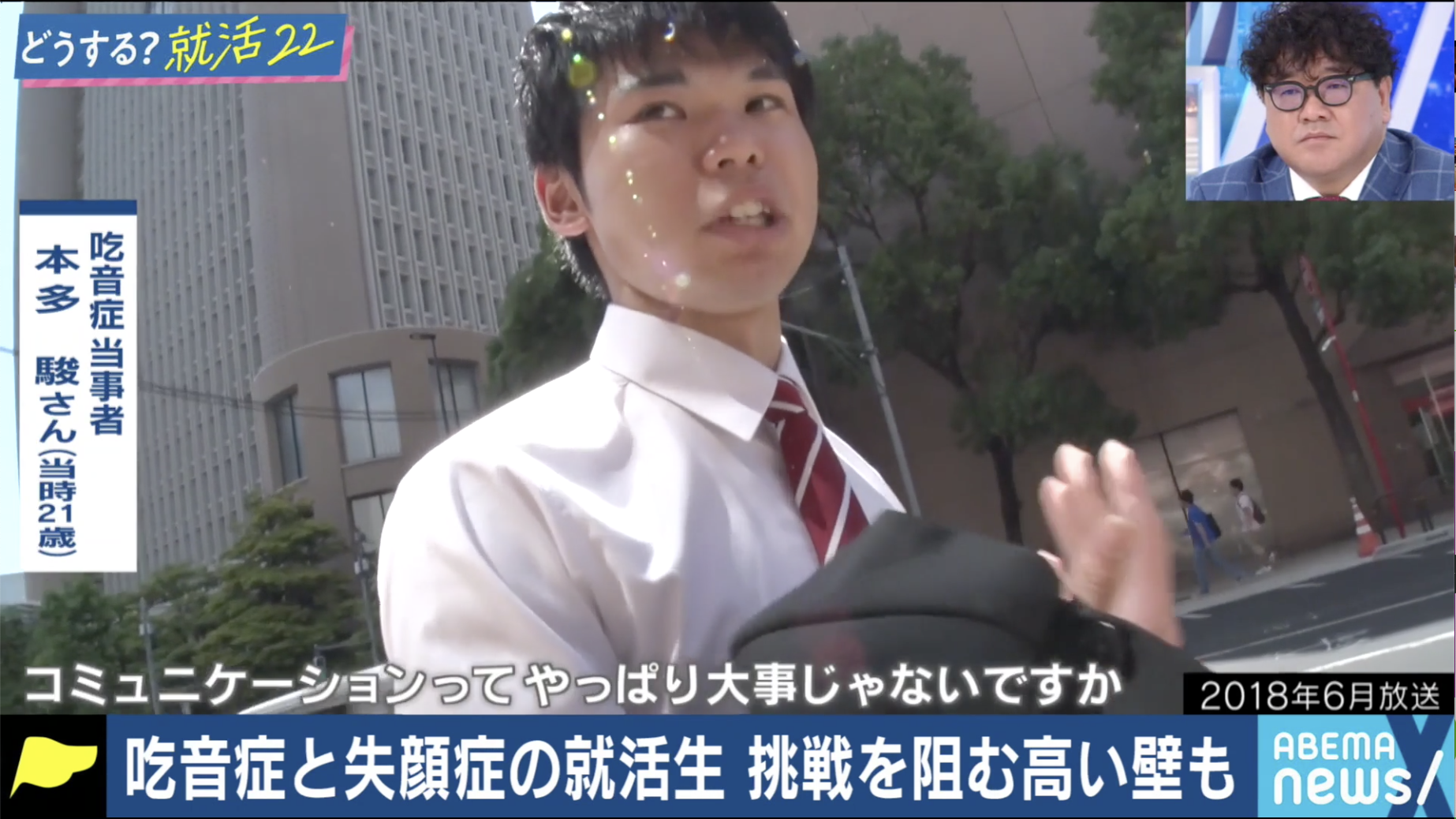 「人と話すことってどこでも使うスキルだし、それが欠けているってなると、すごく大変。苦労する場面が多い」。言葉をスムーズに発することができない吃音(きつおん)症の本多駿さんは、就活での困難をそう振り返る。
