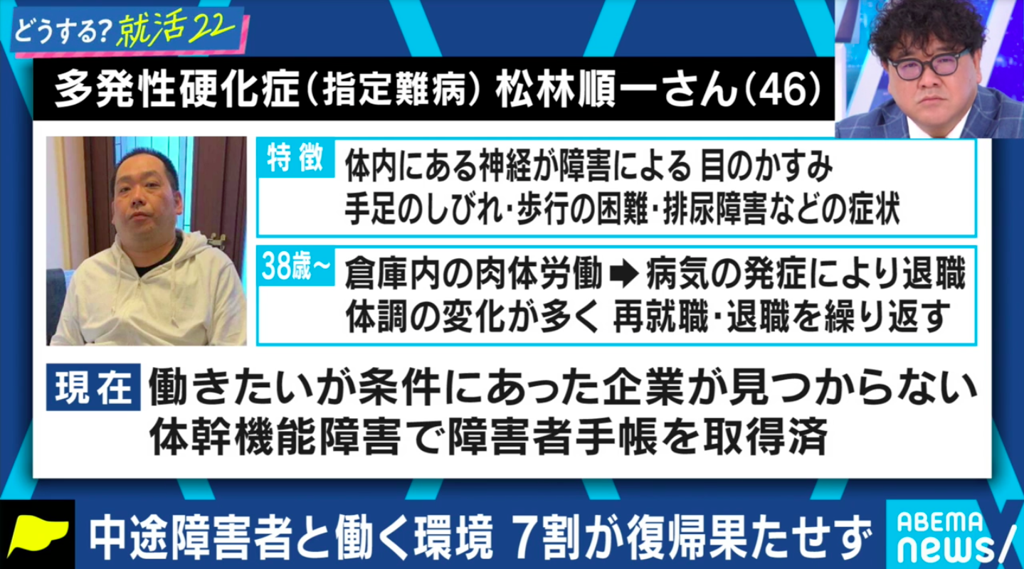 いつ、誰の身にも起こりうる病気や障害。就職活動が本格スタートした1日の「ABEMA Prime」では、この問題を考えた。