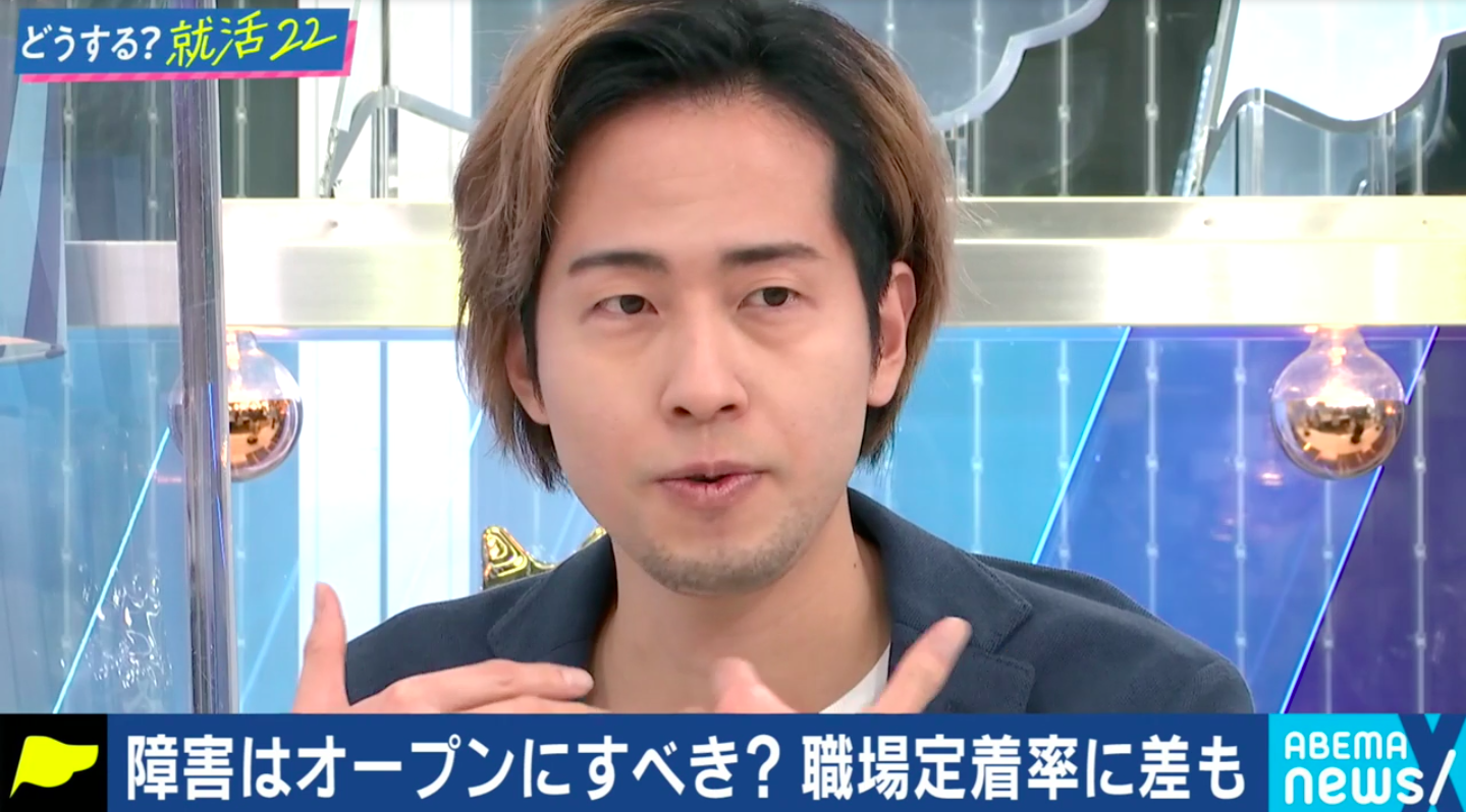 学生時代に障害者の就職支援に携わっていたという慶應義塾大学の若新雄純特任准教授は「企業は障害者手帳を持っている人を一定数雇わないといけなくなっているが、『手帳があるから就職できたと言われるのは嫌だ』という意見もある。それでも自分が人生の中でいつ当事者の側になるか分からないと考えれば、手帳を持っている人が仕事をできる場所が用意されている社会にしていくことが必要だと思う。それは差別ではなく、いい意味での区別だ。そうすれば、面接で説明しても問題ない、という社会になっていくと思う。加えて、健常者と社員と同じような就労状態に近づけてはじめて就労支援だ、みたいな雰囲気もあるが、そこをゴールにするのではなく、社会保障の手当てとやりがいを前提に、報酬が少ないものや、家でできるテレワークみたいなものも含めて考えるべきだと思う。これはフリーランスや起業が正社員として雇用されることよりも低く見られていることにつながっている気がする」と指摘した。