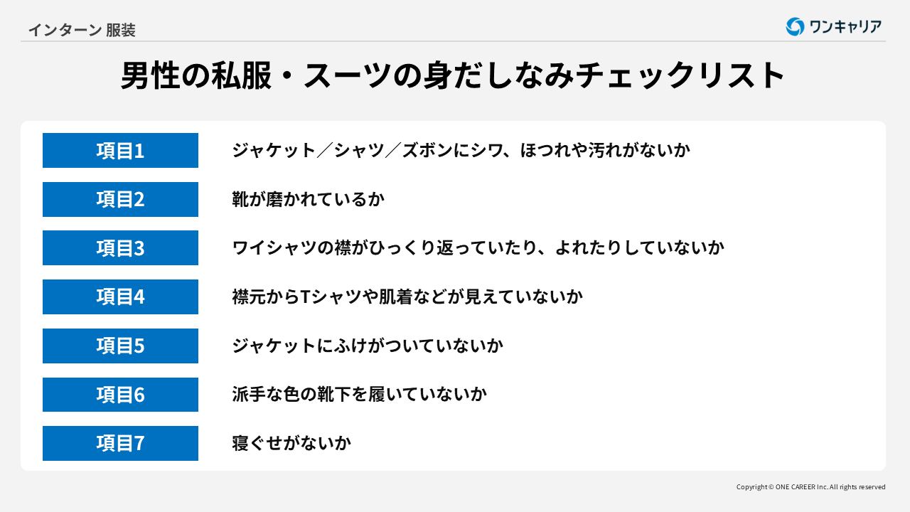 ●5.インターンや面接の前に! 私服・スーツの身だしなみチェックリスト