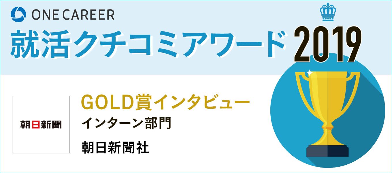 そんな状況を鑑み、ワンキャリアは5万件以上のクチコミから「本当に行ってよかった」と思うインターンのランキングを「就活クチコミアワード」として公開しました。そのトップ10社である「GOLD賞」を受賞した企業のうち、今回は朝日新聞社をインタビュー。彼らのインターンにかける思いやこだわりを人事部の須賀裕一さんと木村悦子さんに伺いました。