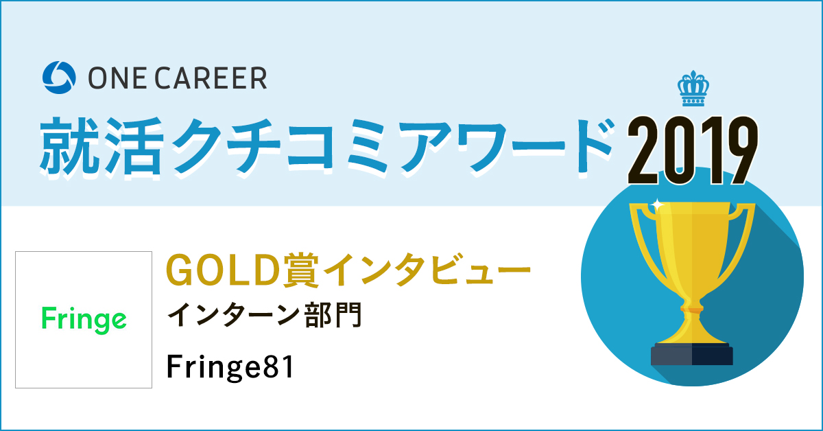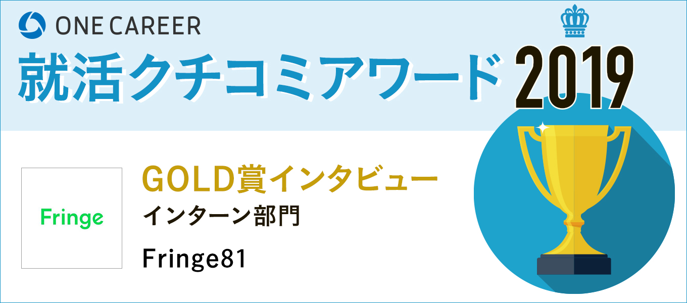 そんな状況を鑑み、ワンキャリアは5万件以上のクチコミから「本当に行ってよかった」と思うインターンのランキングを「就活クチコミアワード」として公開しました。そのトップ10社である「GOLD賞」を受賞した企業のうち、今回はFringe81をインタビュー。彼らのインターンにかける思いやこだわりを人事の浦川さんに伺いました。