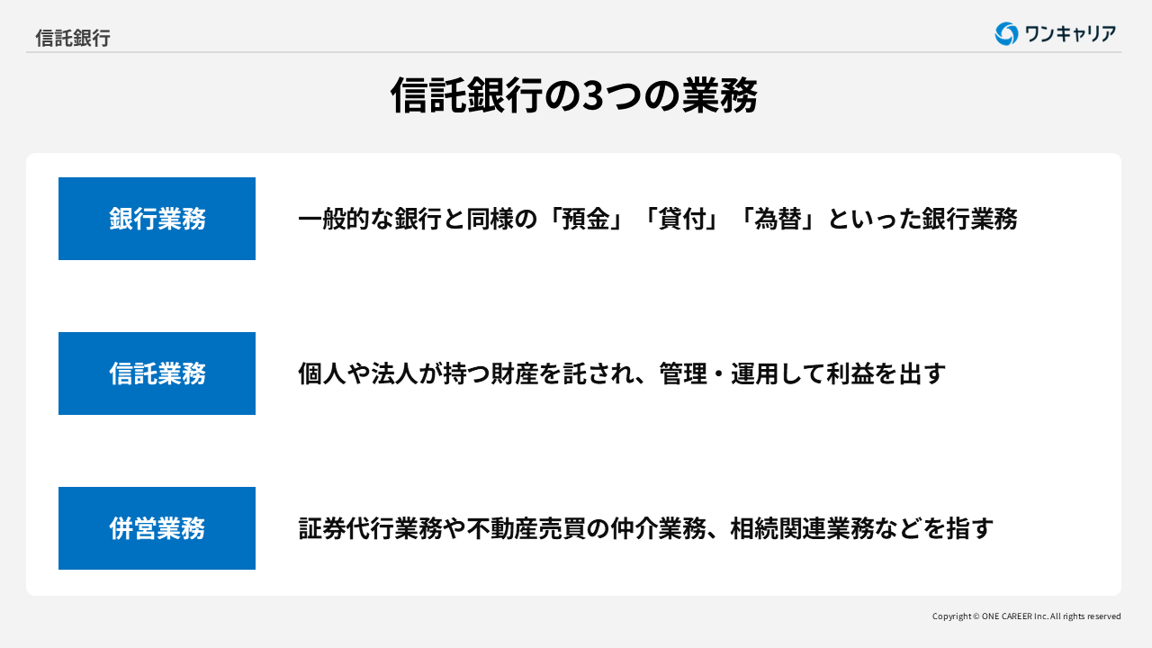 ここでは、信託銀行三つの業務内容について詳しく解説していきます(※2)。