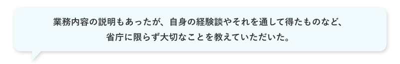 コロナ禍以前の話にはなるが、外務省などは本格的なワークを通して、業務内容を伝えていることが分かる。表に出づらい業務だからこそ、伝え方は重要だ。各省とも「リアルさ(生っぽさ)」が高評価を得ている。