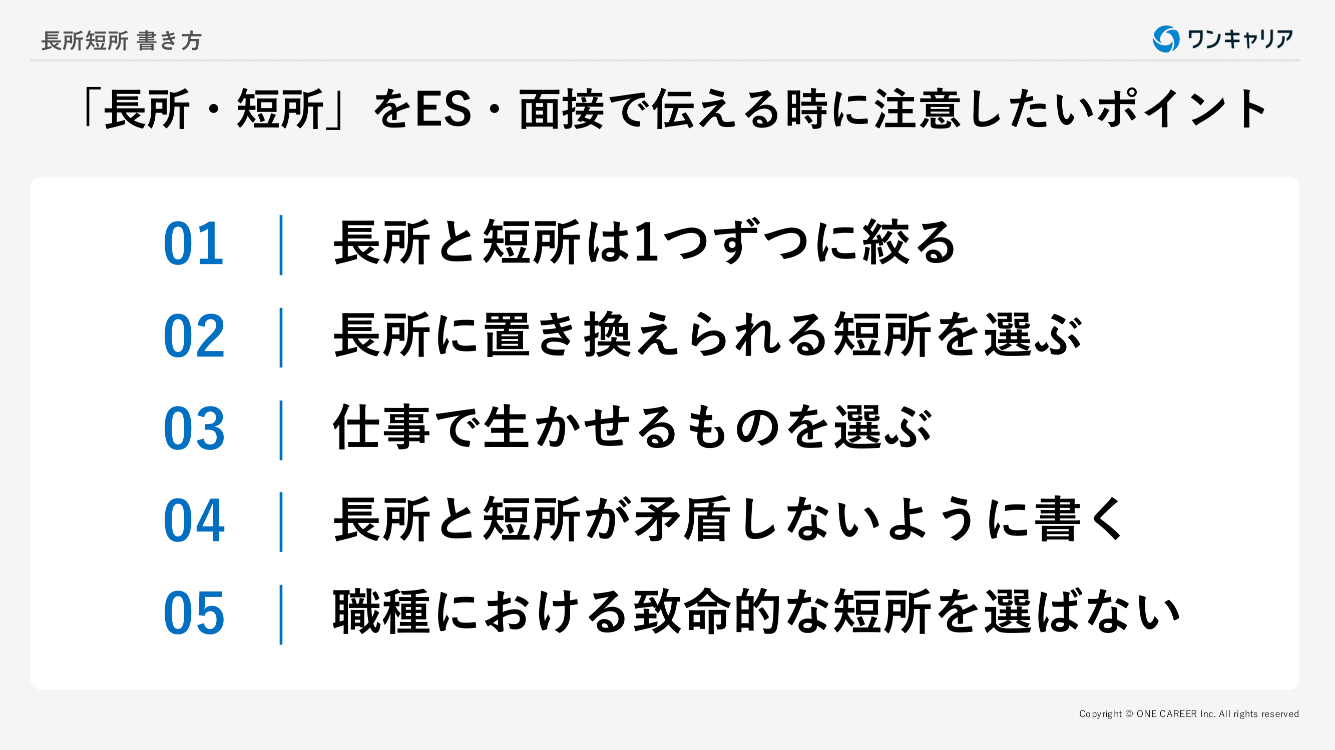 ●「長所・短所」のES・面接での書き方/伝え方:基本構成