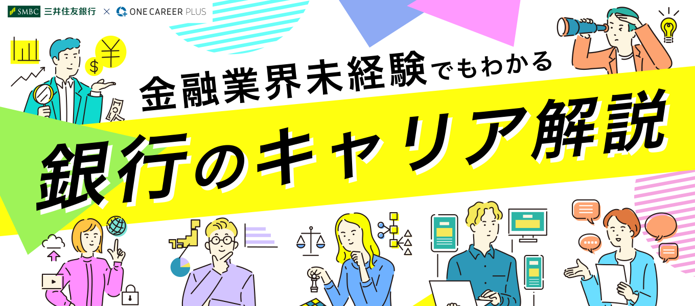 本記事は「ONE CAREER PLUS」に掲載されたコンテンツを転載したインフォグラフィック記事です。中途入社者向けの内容ではありますが、新卒で銀行に入った後のキャリアパスが分かるため、学生の皆さんにも参考になる内容です。