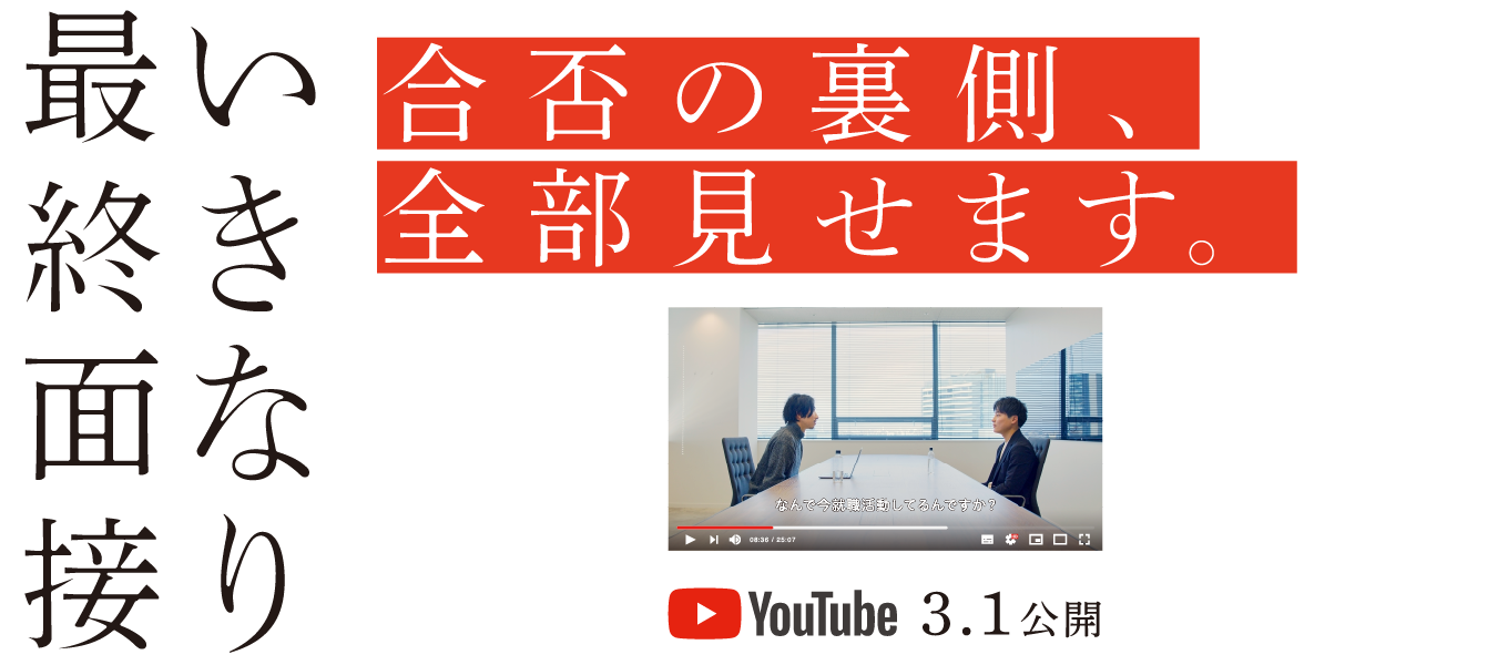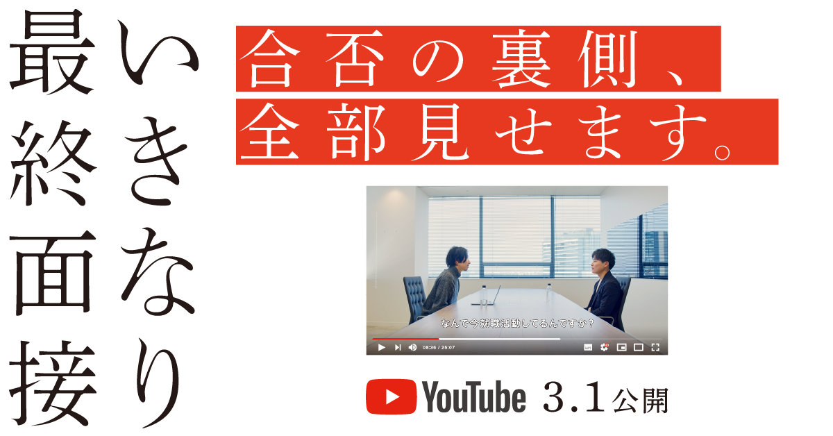 3月1日。2024年卒の学生の就職活動が本格化するこの日、ワンキャリアは「いきなり最終面接」という動画を公開しました。今まさに就活中の学生が、実際に企業の最終面接を受けている様子、その合否の裏側までを公開した就活ドキュメンタリーです。