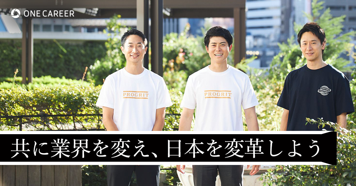 今回は岡田さんに加えて、同社の共同創業者で副社長を務める山碕峻太郎さん、CFOの谷内亮太さんの3人にお話しを聞きました。マッキンゼー出身の岡田さん、リクルート出身の山碕さん、ゴールドマン・サックス出身の谷内さんがタッグを組んでどのように経営をしているのか、そして3人の古巣にはない「若手が伸びるプログリットの成長環境」についてお届けします。