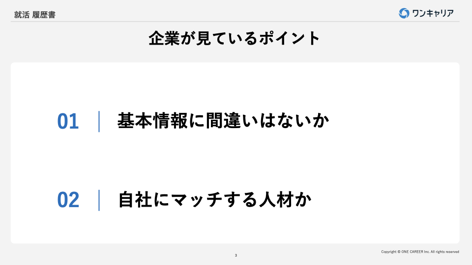 続いて、企業の採用担当者が就活の履歴書で見ているポイントを2つご紹介します。以下2点に注意しながら履歴書を作成していきましょう。