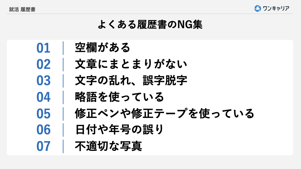 就活で新卒がやりがちな履歴書のNG例を紹介します。事前に問題があるケースを確認していれば、同じ過ちを防ごうと考える抑止効果から、次回以降の記載ミスを防げるでしょう。