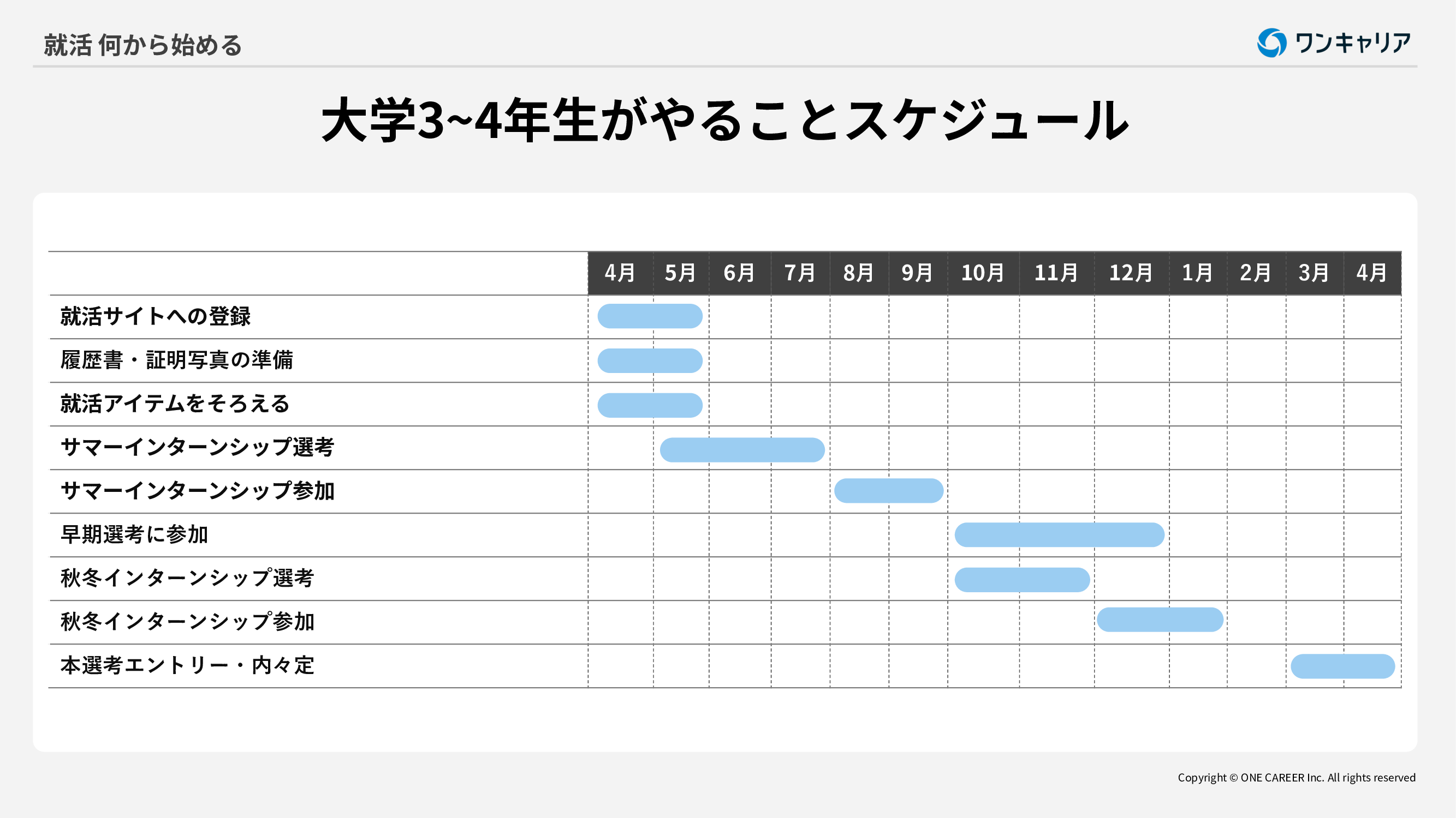 大学3年生以降は、いよいよ就活が本格化する時期です。ここからは、大学3〜4年でやるべきことを解説します。