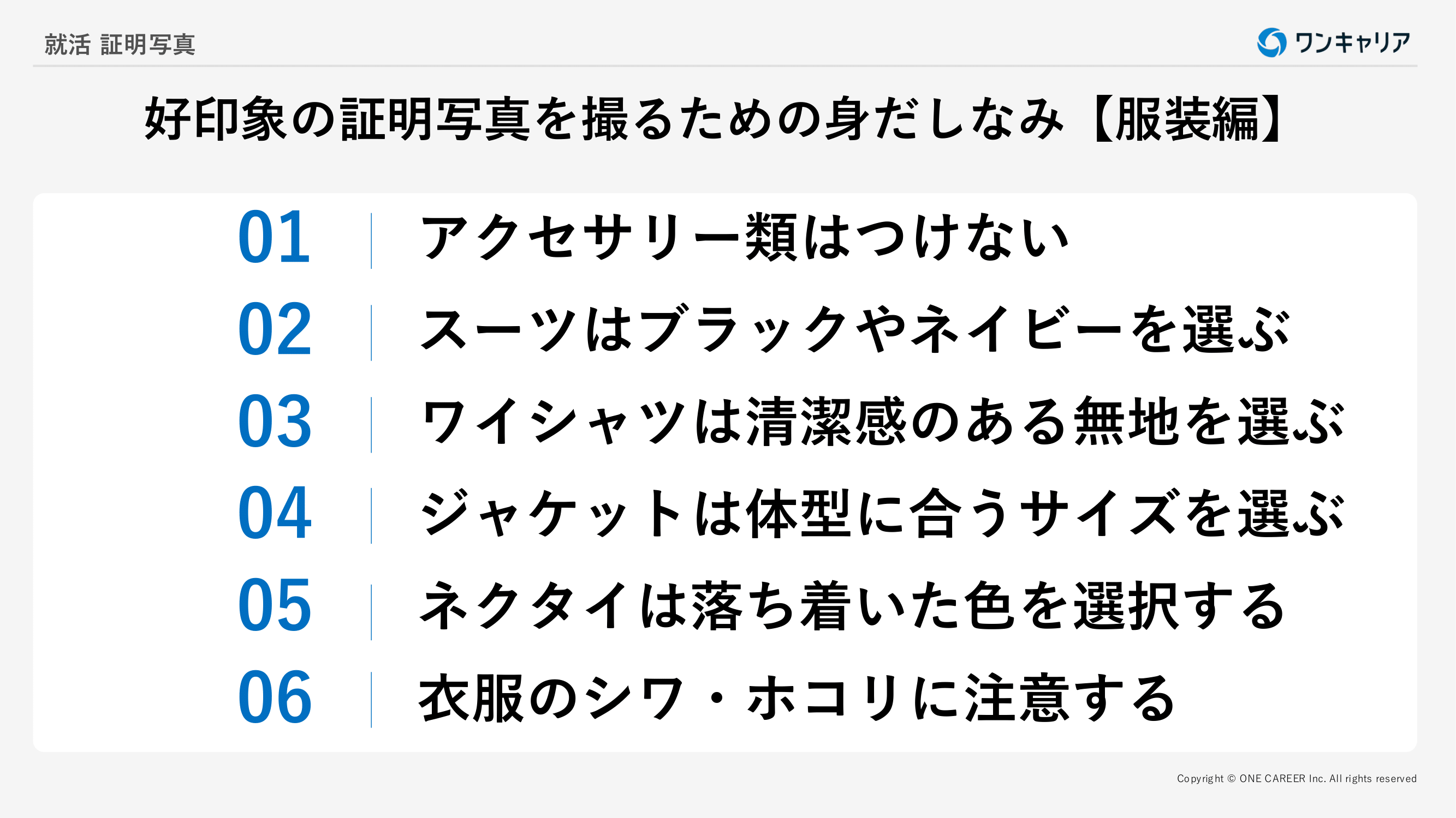 就活の証明写真には、ビジネスマナーの観点からいくつか守るべき基本事項があります。
