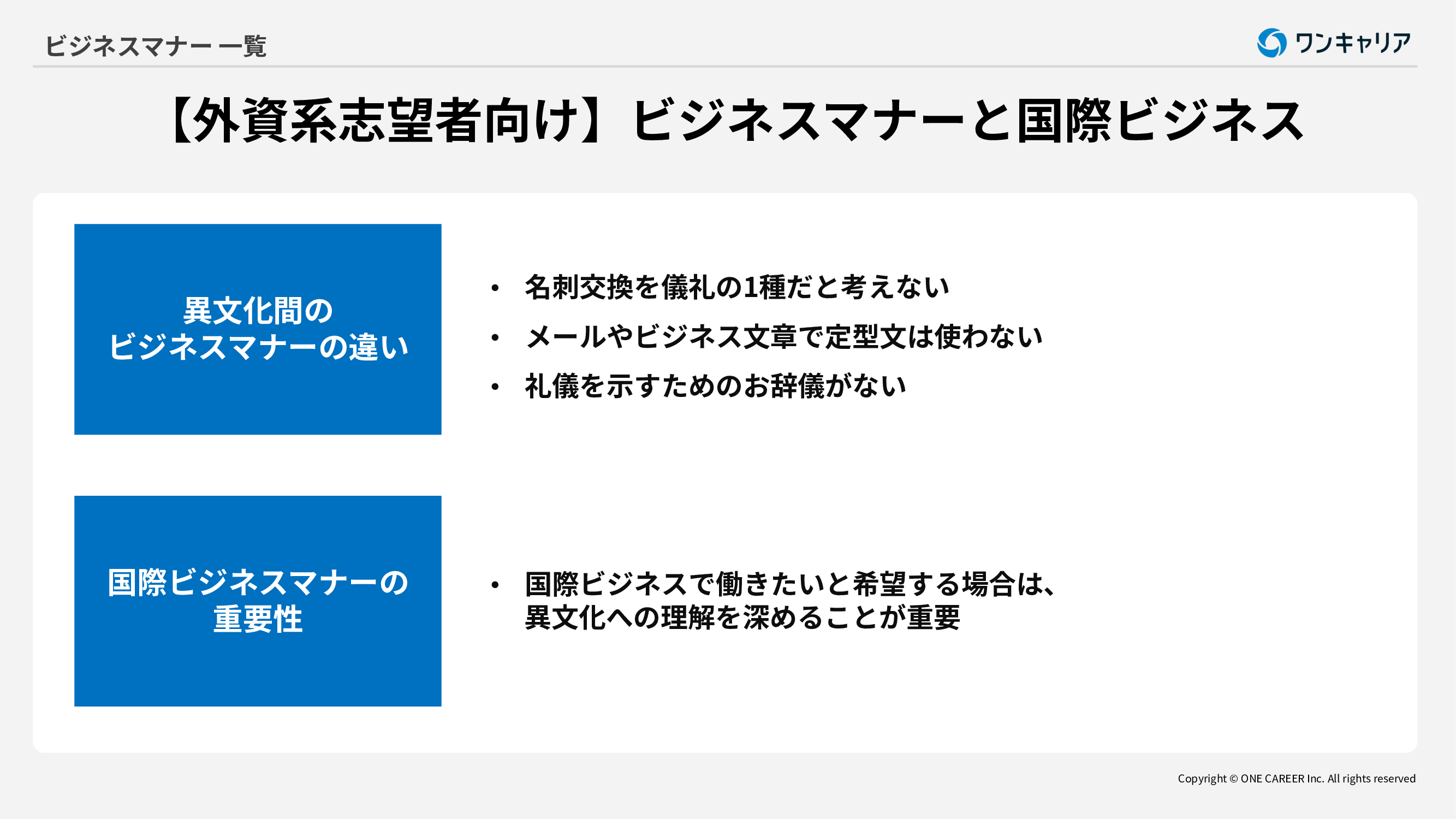 ●【外資系志望者向け】ビジネスマナーと国際ビジネス