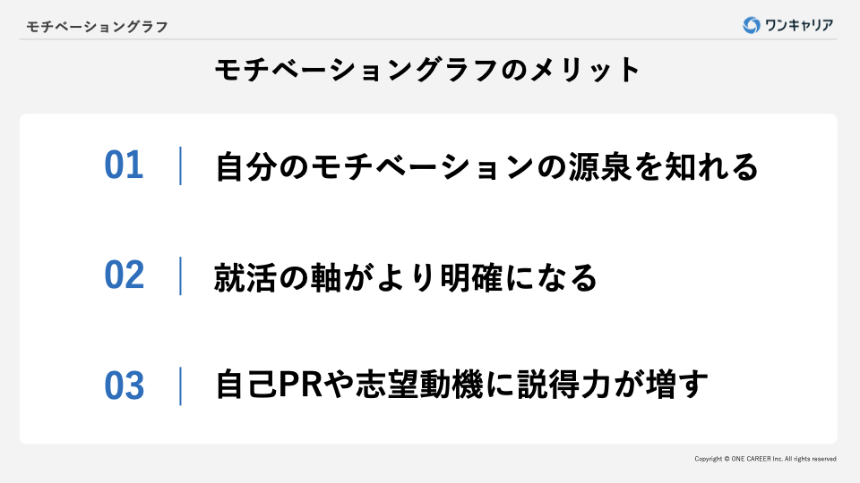 モチベーショングラフの活用で、就活の軸が明らかになるというメリットもあります。