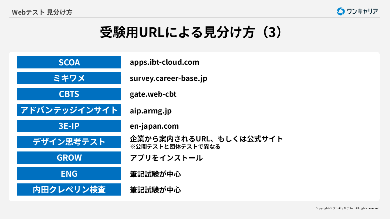 Webテストのみの実施なので「survey.career-base.jp」がURLに含まれていたらミキワメと見分けることが可能です。