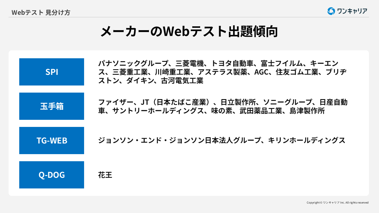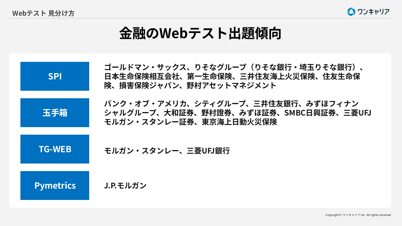 今回この記事では実際に企業で使用されたWebテストを元に、業界別の傾向や見分け方のほか、それぞれの特徴や対策方法まで解説いたします。