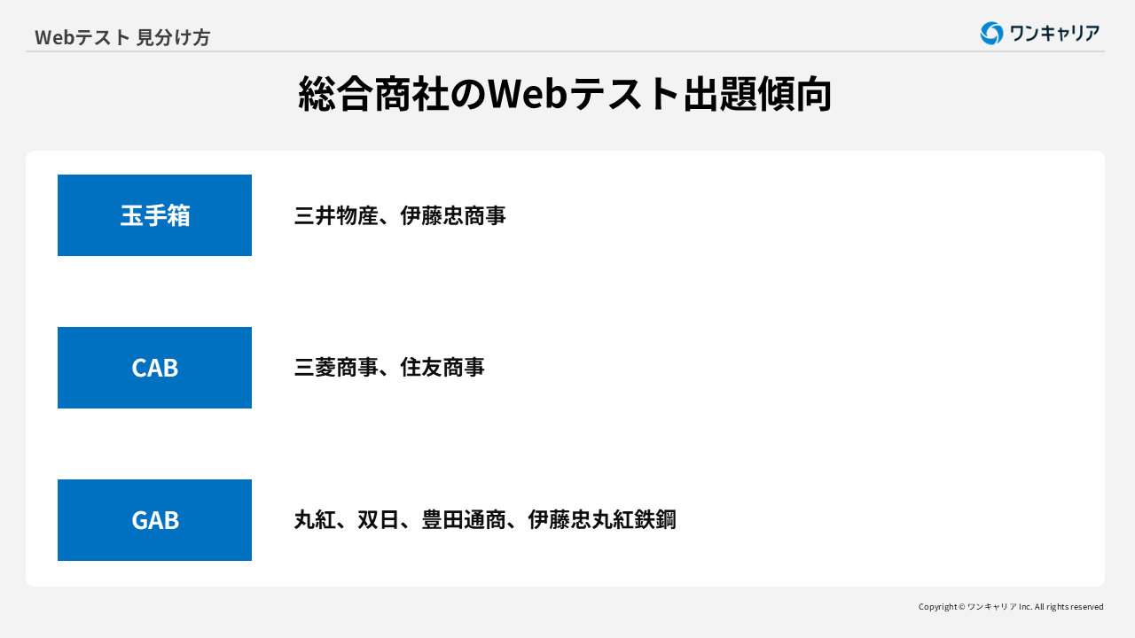 ・総合商社(三菱商事、三井物産、丸紅)のWebテスト出題傾向