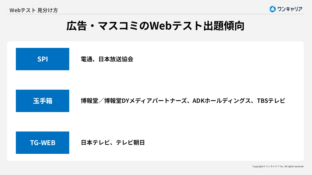 ・広告・マスコミ(電通、博報堂、日本テレビ)のWebテスト出題傾向
