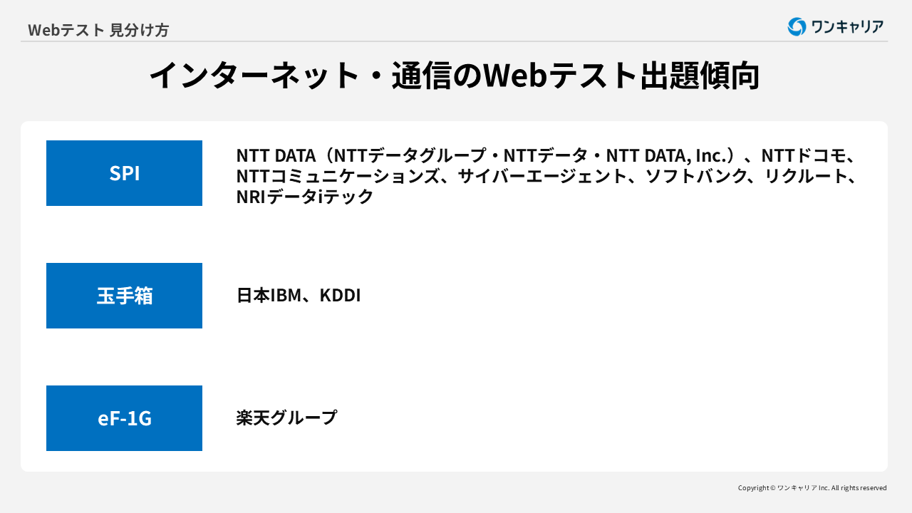 インターネット・通信(NTTデータ、日本IBM、楽天グループ)のWebテスト出題傾向