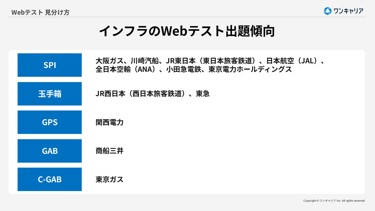 ・インフラ(日本航空、東急、東京ガス)のWebテスト出題傾向
