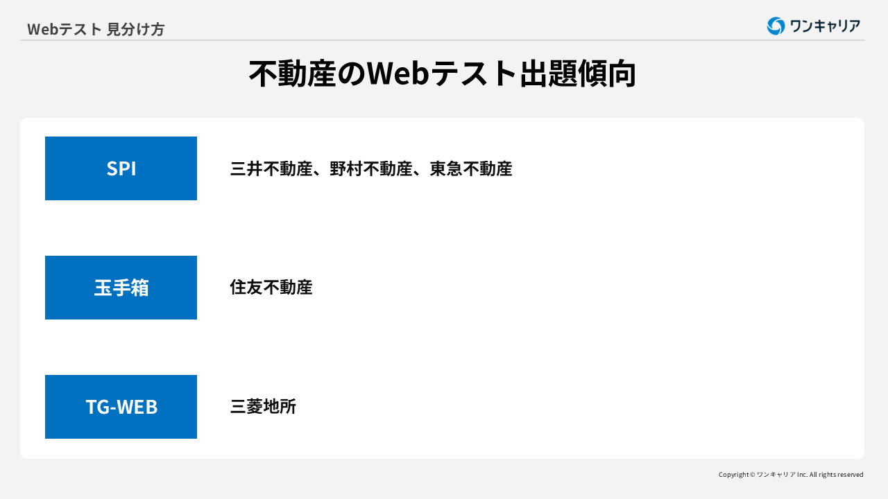 ・不動産(三井不動産、住友不動産、三菱地所)のWebテスト出題傾向