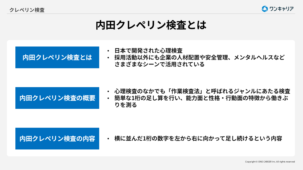 内田クレペリン検査の概要