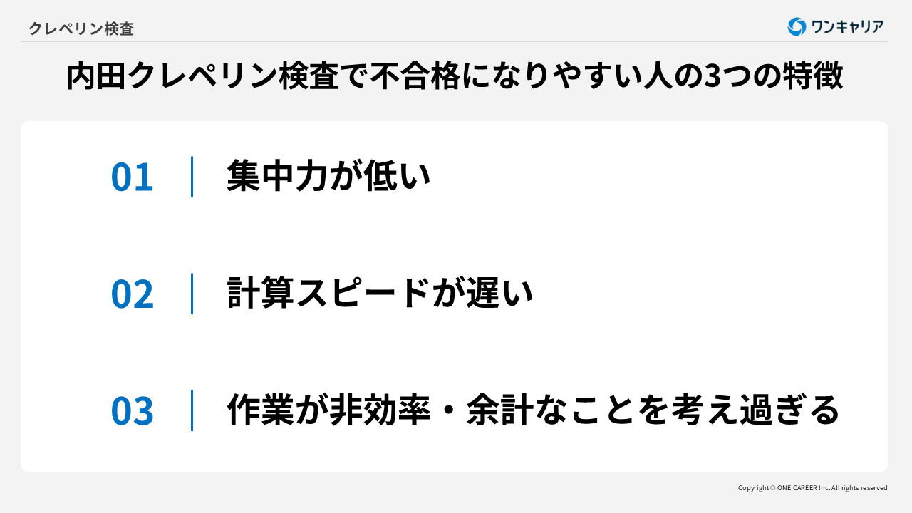 ●内田クレペリン検査で落ちる人の3つの特徴