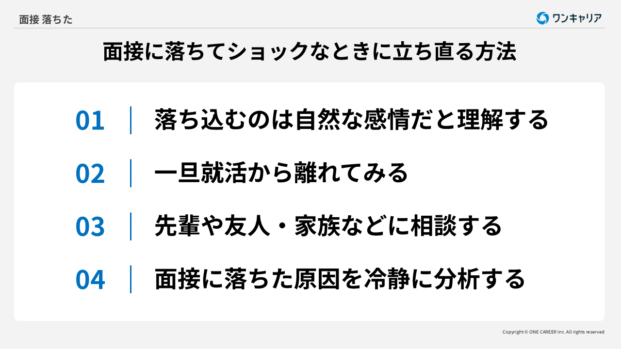 面接の不合格通知を受け取ったとき、気持ちを切り替えようとしてもすぐには難しいものです。