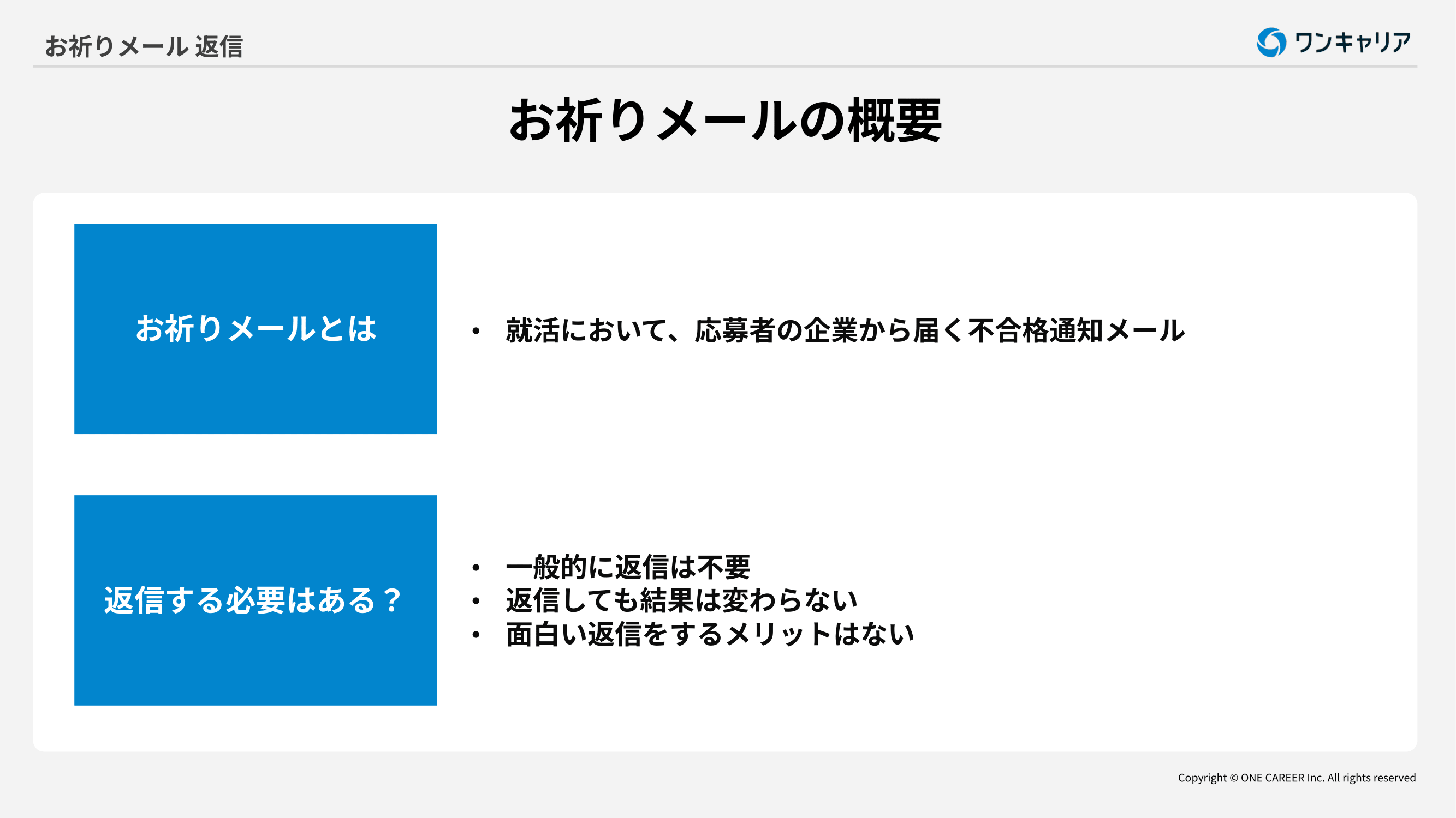 就活でお祈りメールをもらった際、基本的に返信は不要ですが、返信すべき場合もあります。