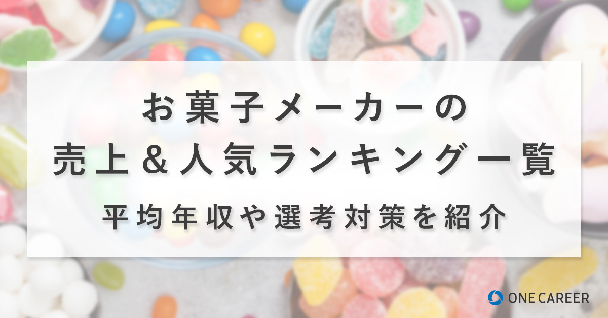 今回は、お菓子メーカーへの就職を考えている就活生に向けて、お菓子メーカーの売上高ランキングトップ10をご紹介します。それぞれの企業の選考難易度や仕事内容、平均年収などの基本情報に加え、お菓子メーカーの選考対策をご紹介します。