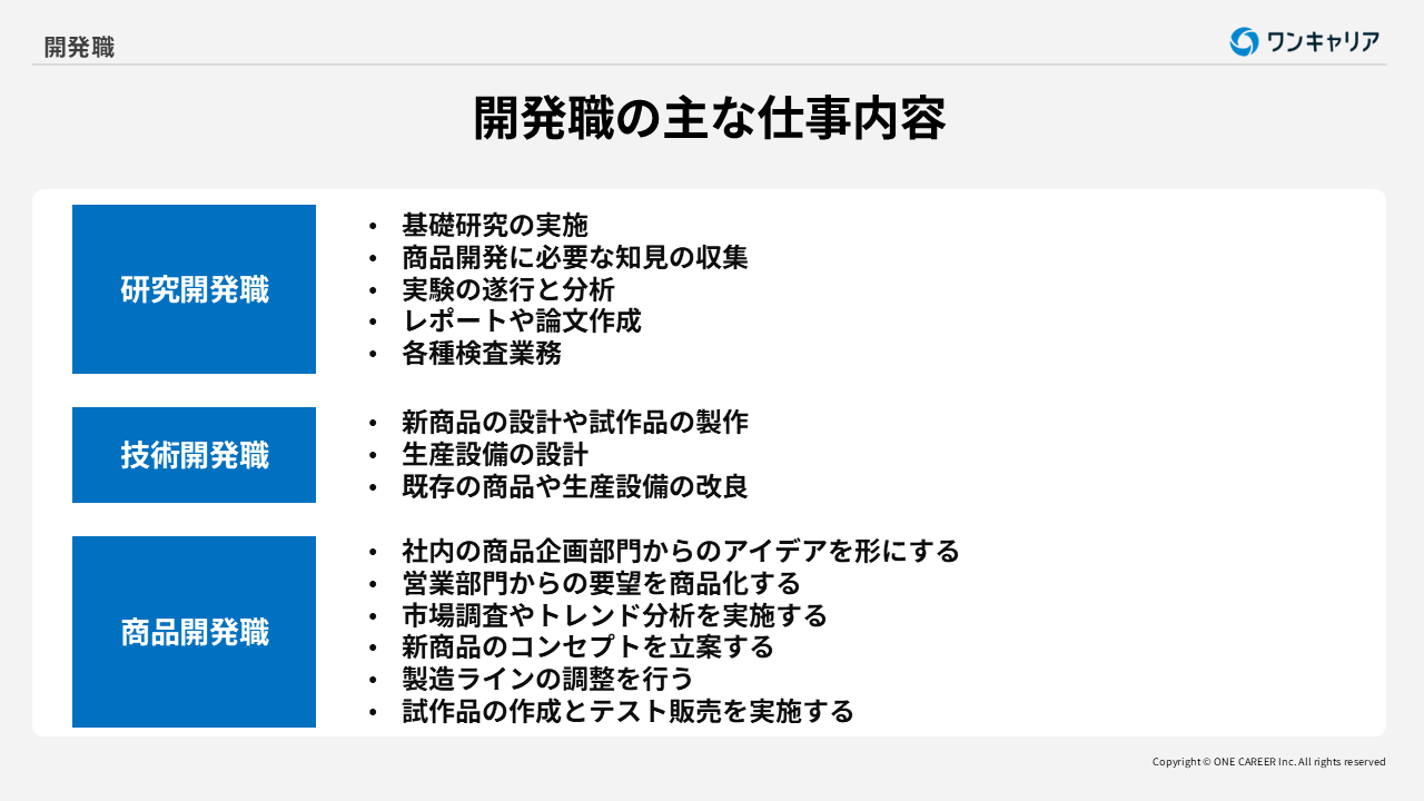 開発職での就職を検討している方は、ぜひ読んでみてください。