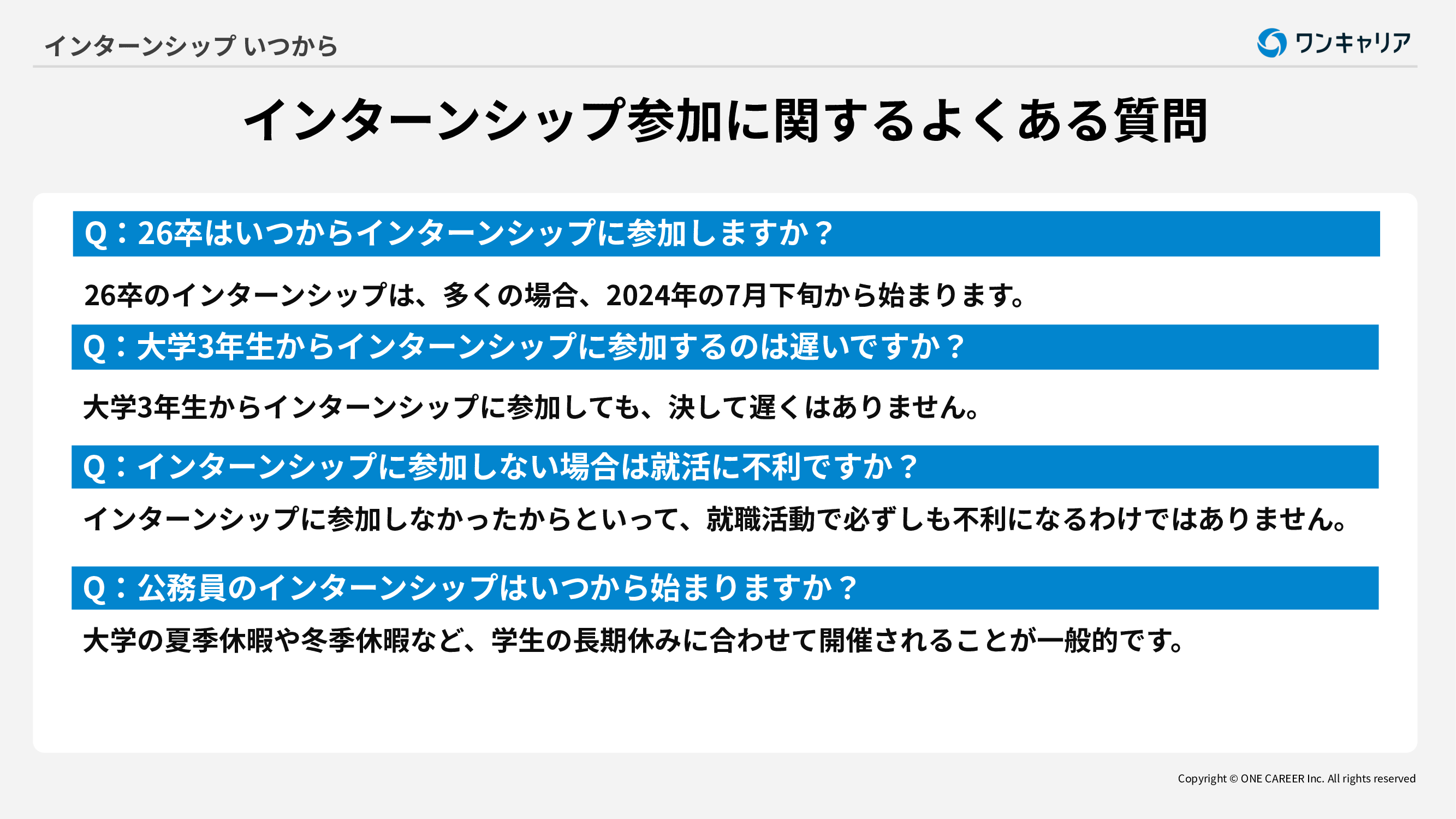 ・大学3年生からインターンシップに参加するのは遅いですか?