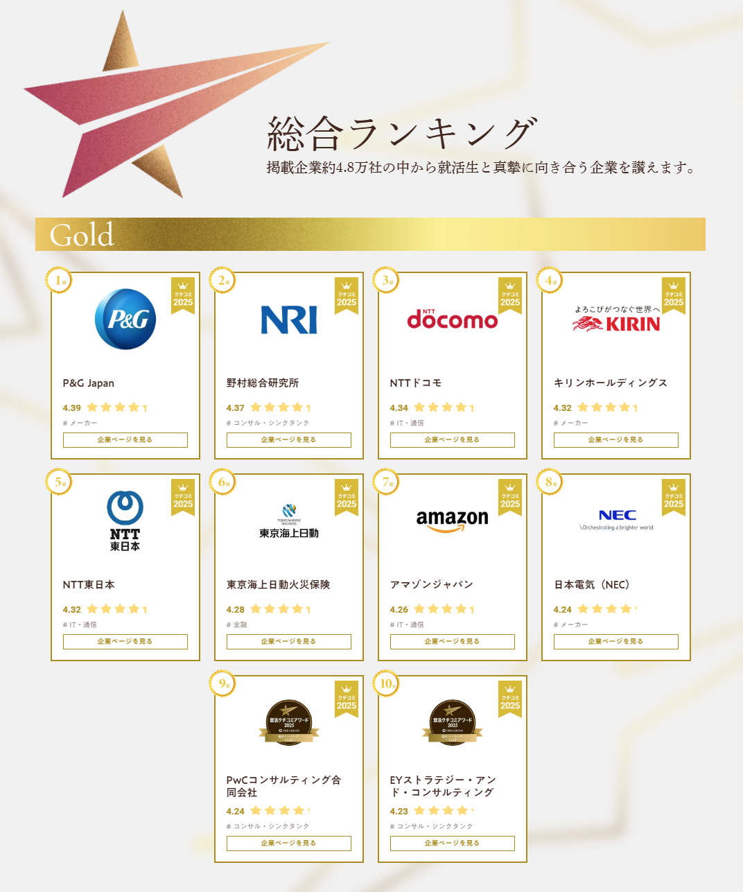 残りの企業一覧、そして詳しい内容は「就活クチコミアワード 2025」をご覧ください。