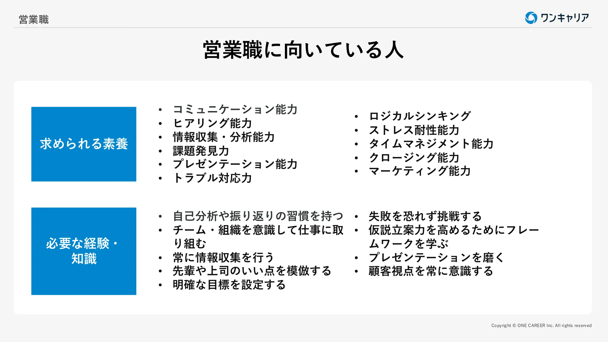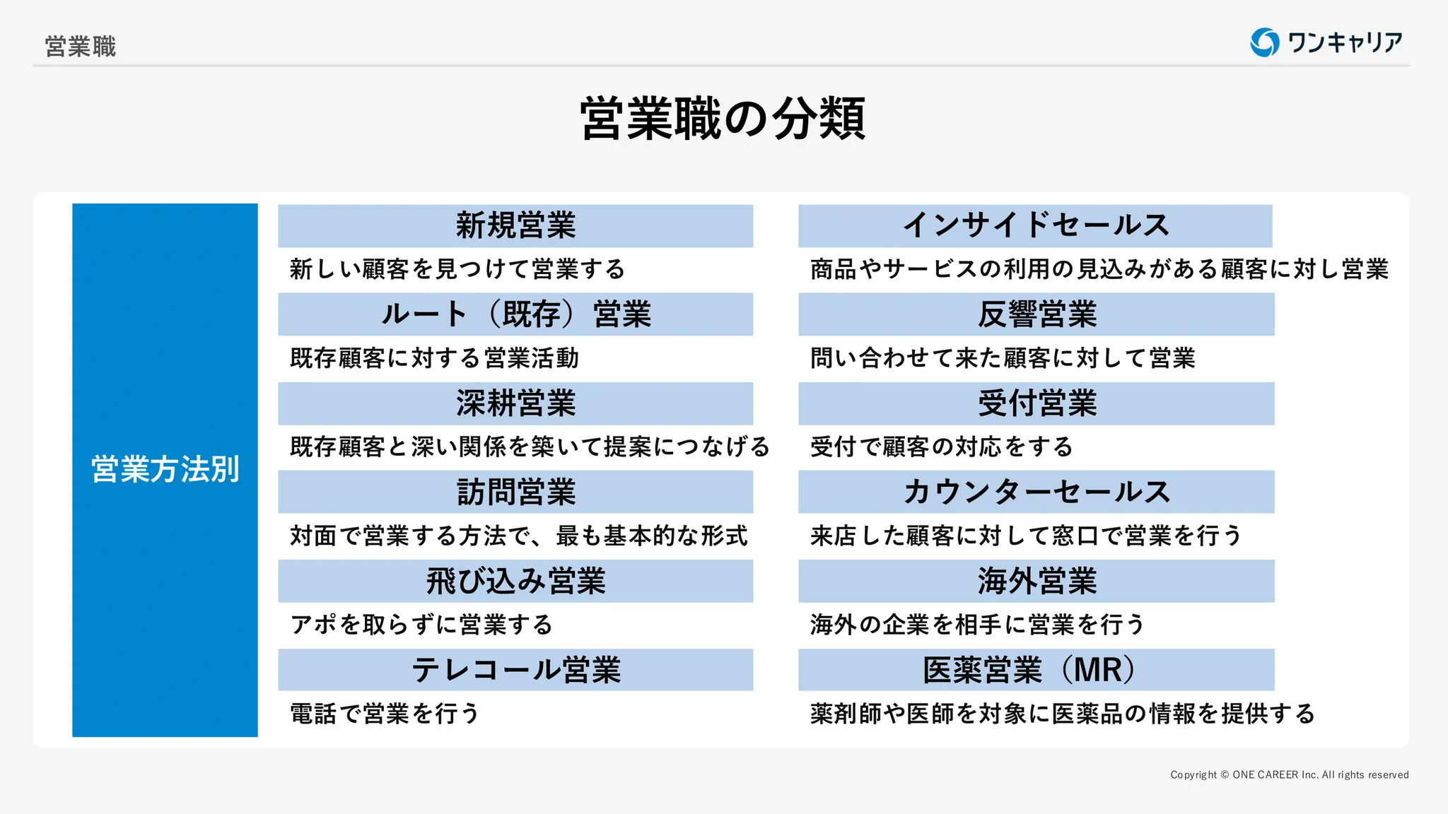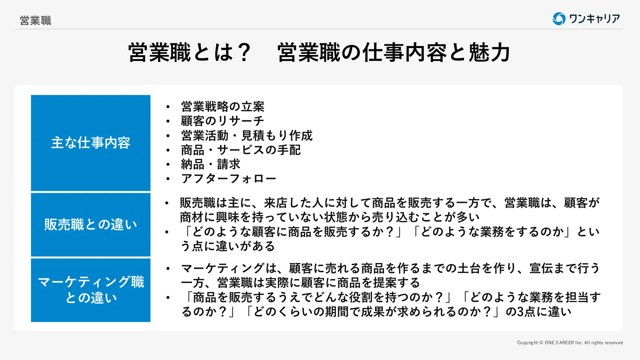 また、営業職が活躍する業界とそれぞれの商材について具体的に解説しました。