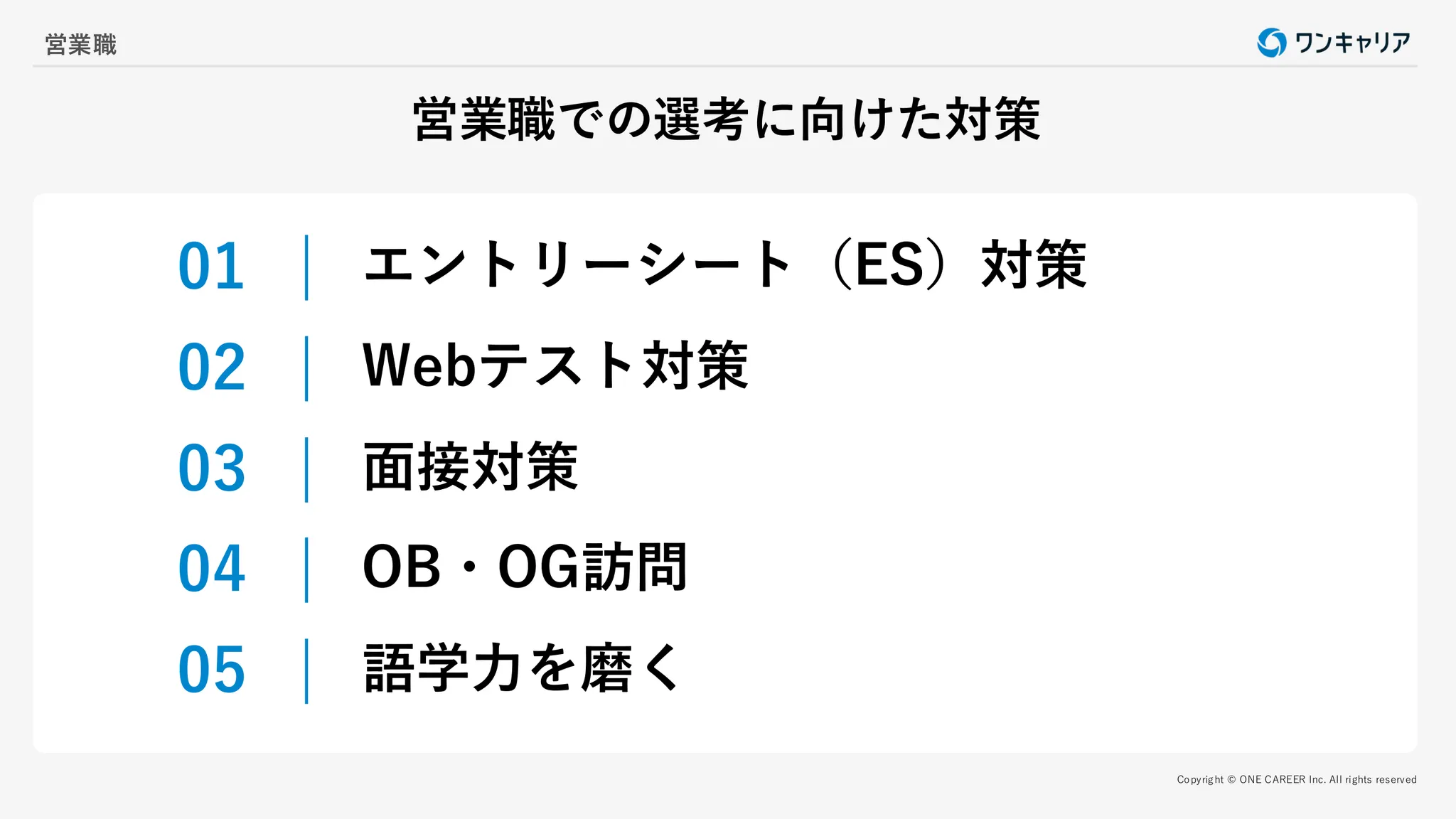 営業職への就職を考えている学生は多いと思いますが、営業職として採用されるためにはどのような就活対策をすればよいのでしょうか。