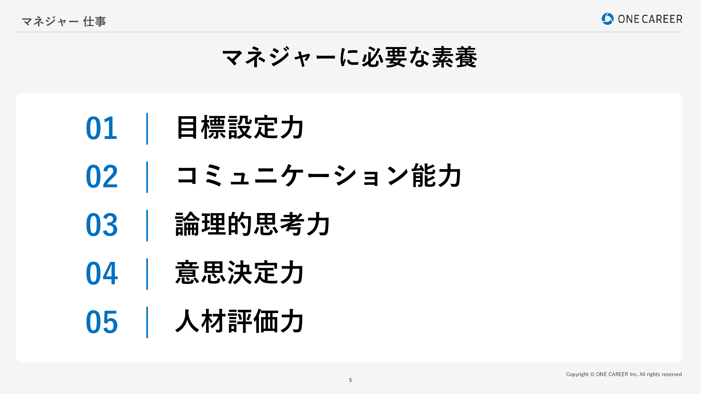 他にも、意思決定力もマネジャー職に求められる素養です。