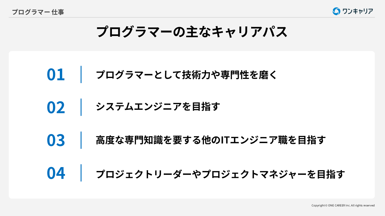 プログラマーの主なキャリアパス