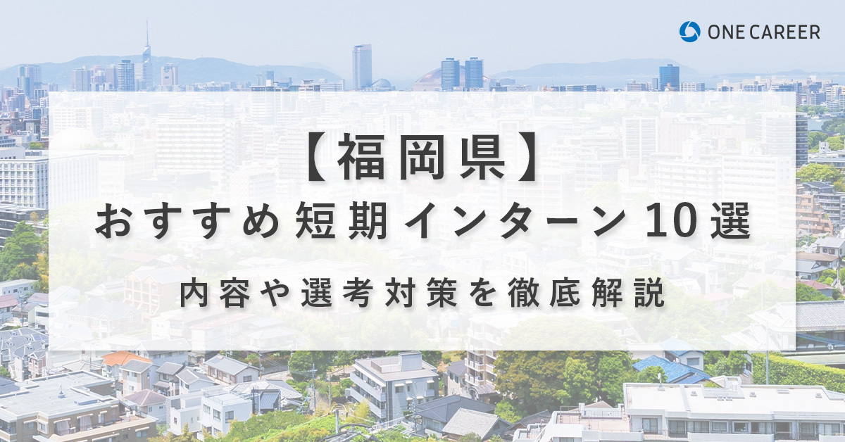 <目次> ●福岡県のおすすめ夏インターンランキング【厳選10選】 ・(1)TOTO|【8/15(火)まで】TOTO株式会社 25年卒【技術職】 夏季インターンシップエントリー受付中! ・(2)アイ・ケイ・ケイホールディングス|【選考対策】IKKカレッジ~ES・GD・面接対策~ ・(3)ベガコーポレーション|【優勝賞金10万円★経営に提言】新規事業立案-5days- ・(4)ベガコーポレーション|【エンジニア登壇】新卒リアルトーク~エンジニア向け説明会~ ・(5)ベガコーポレーション|【満足度97%の選べる4つのインターン】1.5hインターンシップ紹介&人事座談会<経営陣に提言/社員と密に接点持てる/職種体験&適職診断/特別選考案内> ・(6)LINEヤフーコミュニケーションズ(旧:LINE Fukuoka)|【LINE Fukuoka】 インターンシップ 『まちづくり×テクノロジー』福岡の課題解決に挑むSmart Cityコース ・(7)テレビ西日本|【福岡・フジ系】TNCテレビ西日本サマーインターン(1DAY) ・(8)新出光|【早期選考直結!】福岡本社で開催!ビジネスマナーセミナーと営業のお仕事が体験できる!1day仕事体験 ・(9)新出光|【早期選考直結!】福岡本社で開催!新規事業立案の体験ができる!1day仕事体験 ・(10)空研工業|【大型空調設備/国内シェアトップ】設計職体験インターンシップ<<オーダーメイド設計のヒミツを知ろう!>> ●福岡県のおすすめ冬インターンランキング【厳選10選】 ・(1)西日本鉄道|【西日本鉄道・国際物流部門】~航空輸出を手配する~1Day仕事体験 ・(2)ワールドインテック|【20名限定/福岡本社開催】『人材』×『コンサル』の人材マッチング体験ワーク! ・(3)みんなの銀行|【選考直結型/早期内定】〜国内初のデジタルバンク〜 エンジニア職1DAYワークショップ ・(4)フィネス|<1day>1日で複数職種の業務体験ができる!参加時間も選べる!コース【マーケ・CS・社内SE】 ・(5)大英産業|1/15~17の3daysインターンシップ『総合住宅不動産企業の仕事体験』 ・(6)フォーサイトシステム|【25卒|1day対面仕事体験】<みらいをつくるか、ついていくか>ICT企業でシステム開発を体験してみよう! ・(7)サンリブ|【北九州で開催!】笑顔のくらしを応援します/地域に根ざしたスーパーマーケットで商売を理解する5daysインターンシップ ・(8)東亜建設技術|【早期選考直結】建設コンサルの仕事の本質とは?/1Day開催/同世代の先輩との交流あり ・(9)サンリブ|早期選考/オンライン開催/小売業の魅力発見/地元に根ざしたスーパー/笑顔のくらしを応援します! ・(10)Gcomホールディングス|【早期選考案内アリ】オープンカンパニー&システム体験プログラム #地方創生 #自社開発 #福岡本社 ●福岡県の企業の特徴 ・製造業とインフラ産業の発展 ・観光・交通産業の拠点 ・IT・デジタル関連産業の成長 ・サービス業と地域密着型企業 ●インターンとは ・【新ルール1】インターンの定義・目的 ・【新ルール2】インターンが採用に直結する場合もある ・インターンの種類:短期インターンと長期インターン ・インターンの時期 ・インターンの給料 ●福岡県の1day仕事体験/インターンの選考準備 ・自己分析 ・業界・企業研究 ・自己PR作成 ・インターンの志望動機作成 ・面接対策:インターンの面接でよくある質問 ●おわりに