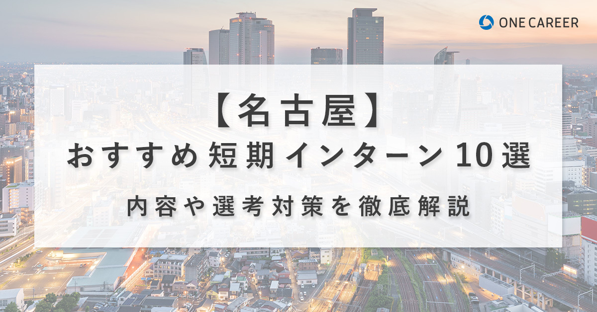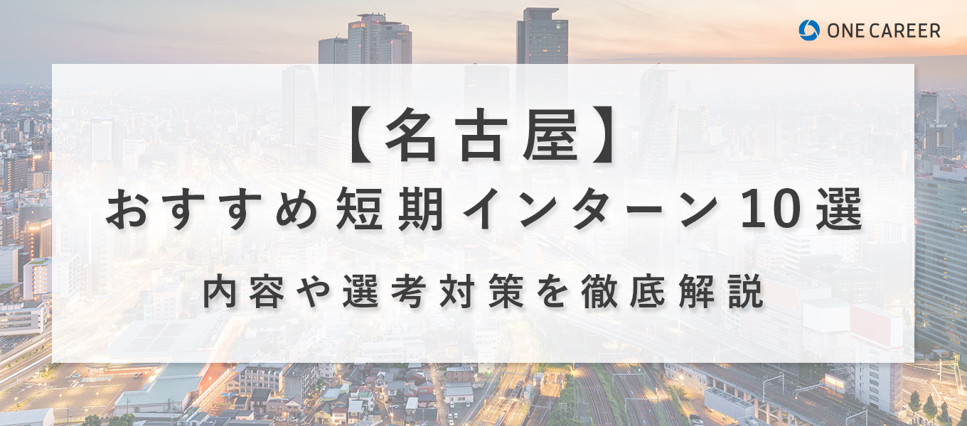 <目次> ●愛知県/名古屋のおすすめ夏インターンランキング【厳選10選】 ・(1)岡谷鋼機|商社営業の体験ができる!3Day-インターンシップ ・(2)JR東海(東海旅客鉄道)|車両・機械系統 Summer Internship ・(3)豊島|【名古屋開催】商社体感!夏季1DAY対面仕事体験 ・(4)トヨタシステムズ|【25卒/名古屋開催】ソリューション型インターンシップ<2DAYS/3DAYSプログラム>|トヨタシステムズ ・(5)アビームシステムズ|【アビームシステムズ】ITコンサルの仕事内容が学べる2daysインターン <企業の経営効率化を促進~SAP導入編~> ・(6)名古屋鉄道|鉄道業界の面白さが分かる!街づくりインターンシップ(名古屋会場) ・(7)MTG|【元P&Gマーケティング責任者から学ぶ】『マーケティングの本質/強いブランドのつくり方』 / 1day(愛知県開催)※交通費支給あり ・(8)足立ライト工業所|<早期選考直結/参加特典あり>業界トップシェア!オンラインで『遊び心をカタチにするモノづくり体感』ができる1dayインターンシップ ・(9)中部テレコミュニケーション|【夏季開催】【営業職】BtoB(法人営業)とBtoC(個人営業) 両方の営業スタイルが体験できるプログラム ・(10)竹本油脂|【界面化学をコア技術に世界で活躍する化学品メーカー】 竹本油脂の研究開発を実体験できるインターンシップ ●愛知県/名古屋のおすすめ冬インターンランキング【厳選10選】 ・(1)岡谷鋼機|商社営業の体験ができる!3Day-インターンシップ ・(2)豊島|【名古屋開催】商社体感!冬季1DAY対面仕事体験(25卒ラスト開催です!) ・(3)トヨタシステムズ|【25卒/名古屋開催】データ分析体験インターンシップ<3DAYS> ~データ分析によってトヨタのビジネスを変革する~ ・(4)東邦ガス|【文理共通】東邦ガスを知る 冬の1Day仕事研究 ・(5)アビームシステムズ|【アビームシステムズ】ITコンサルの仕事内容が学べる2daysインターン <企業の経営効率化を促進~SAP導入編~> ・(6)名古屋鉄道|鉄道業界の面白さが分かる!街づくりインターンシップ(名古屋会場) ・(7)H4|【選考案内アリ/ES不要/ウェブ開催】〈HR×Logistics〉創業から12期連続増収の急成長ベンチャー/ワクワク働く/入社1年目で責任者抜てき多数/「無形商材営業」を体感しよう! ・(8)コプロ・ホールディングス|◆1DAY仕事体験◆《企業理解 × キャリア形成》コース!~後悔のないキャリア選択を~ ・(9)キムラユニティー|【名古屋開催】東証・名証上場!物流×IT×自動車でグローバルにビジネス拡大中!140年以上の安定基盤を肌で感じる1Day仕事体験 ・(10)アールプランナー|※オンライン開催※【早期選考直結】業界で5年成長率4年連続全国No.1を成し遂げた背景をお伝えします。/「13職種」からあなたのキャリアを作りませんか?#集客力×技術力×分業制#完全職種別採用 ●愛知県/名古屋の企業の特徴 ・自動車産業の中心地 ・鉄鋼・特殊鋼産業の強み ・食品産業の発展 ・商社・物流の役割 ・交通・インフラ産業 ・製造業におけるIT・デジタル化 ●インターンとは ・【新ルール1】インターンの定義・目的 ・【新ルール2】インターンが採用に直結する場合もある ・インターンの種類:短期インターンと長期インターン ・インターンの時期 ・インターンの給料 ●愛知県/名古屋の1day仕事体験/インターンの選考準備 ・自己分析 ・業界・企業研究 ・自己PR作成 ・インターンの志望動機作成 ・面接対策:インターンの面接でよくある質問 ●まとめ