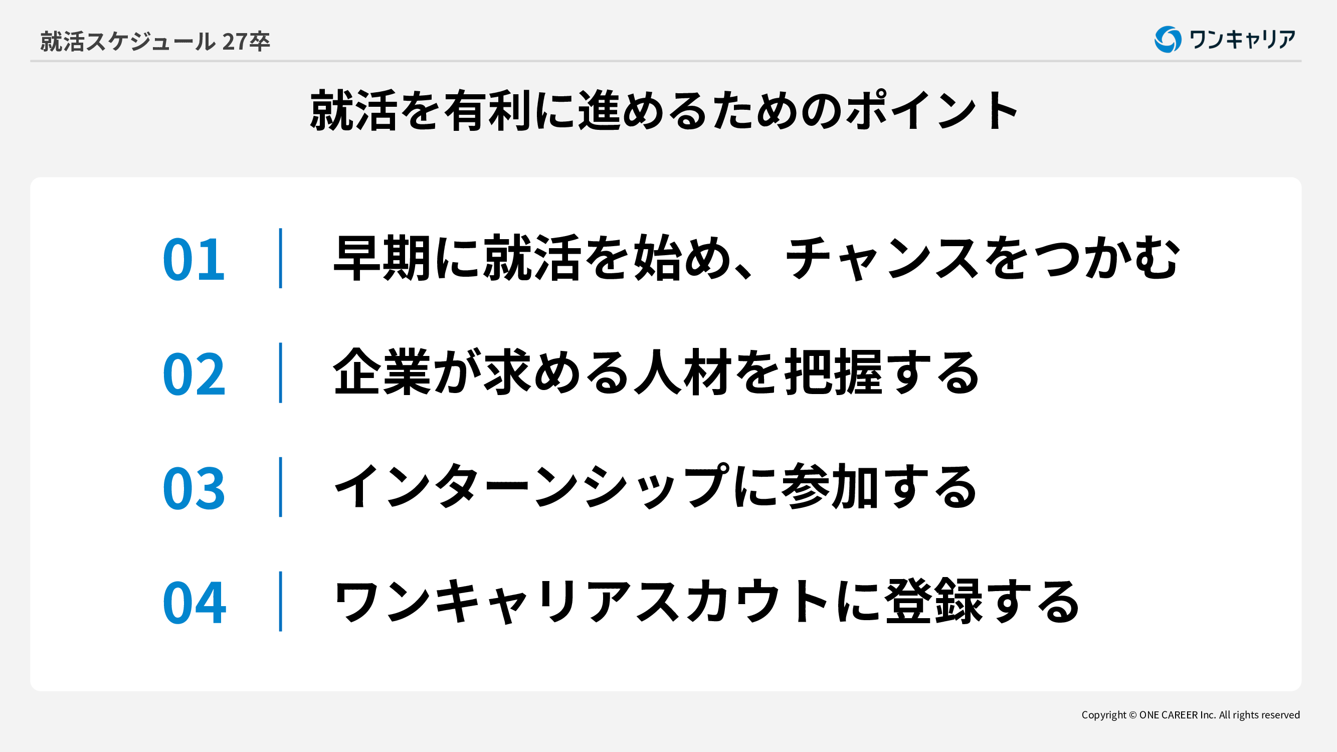・就活の全体像が分かり、スタートダッシュで周りと差がつく