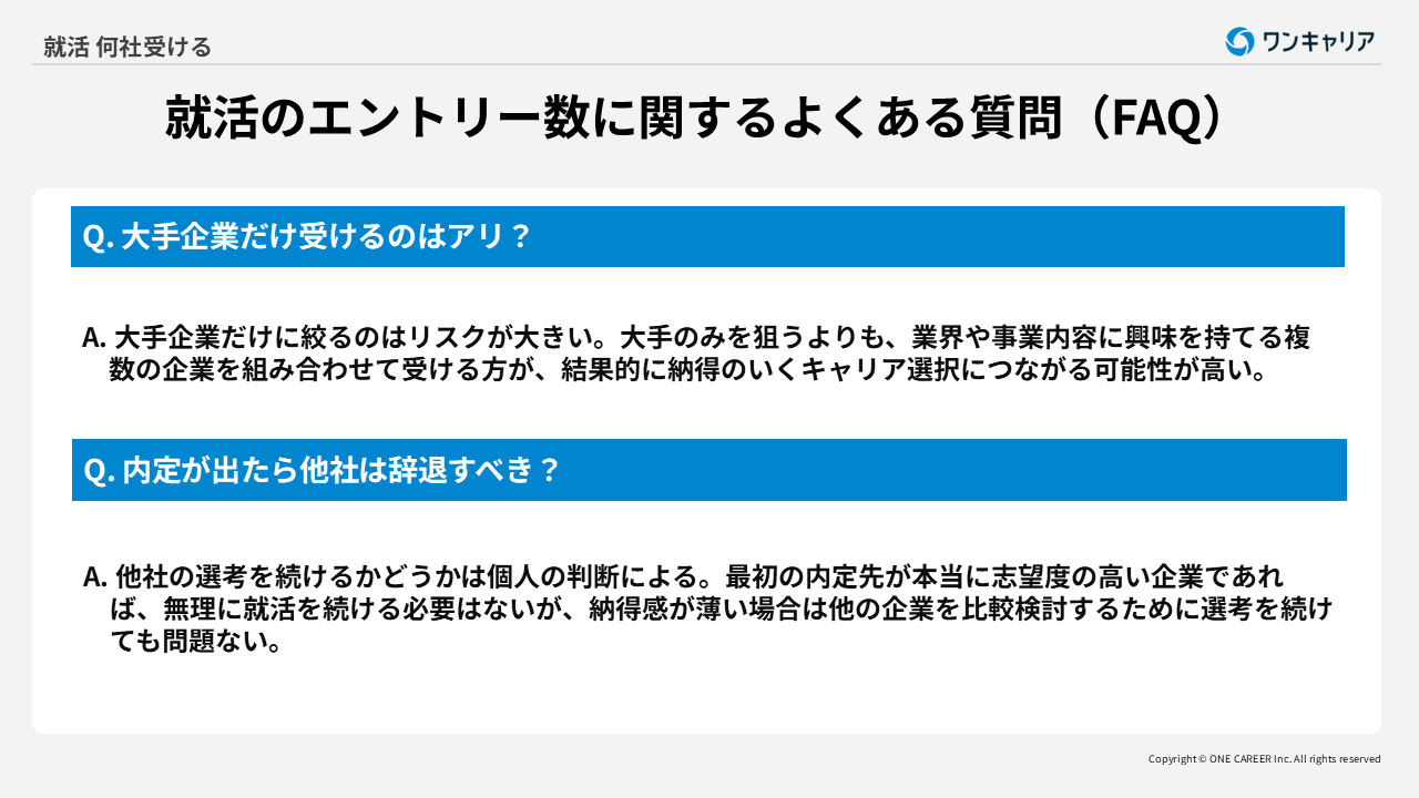Q. 大手企業だけ受けるのはアリ?