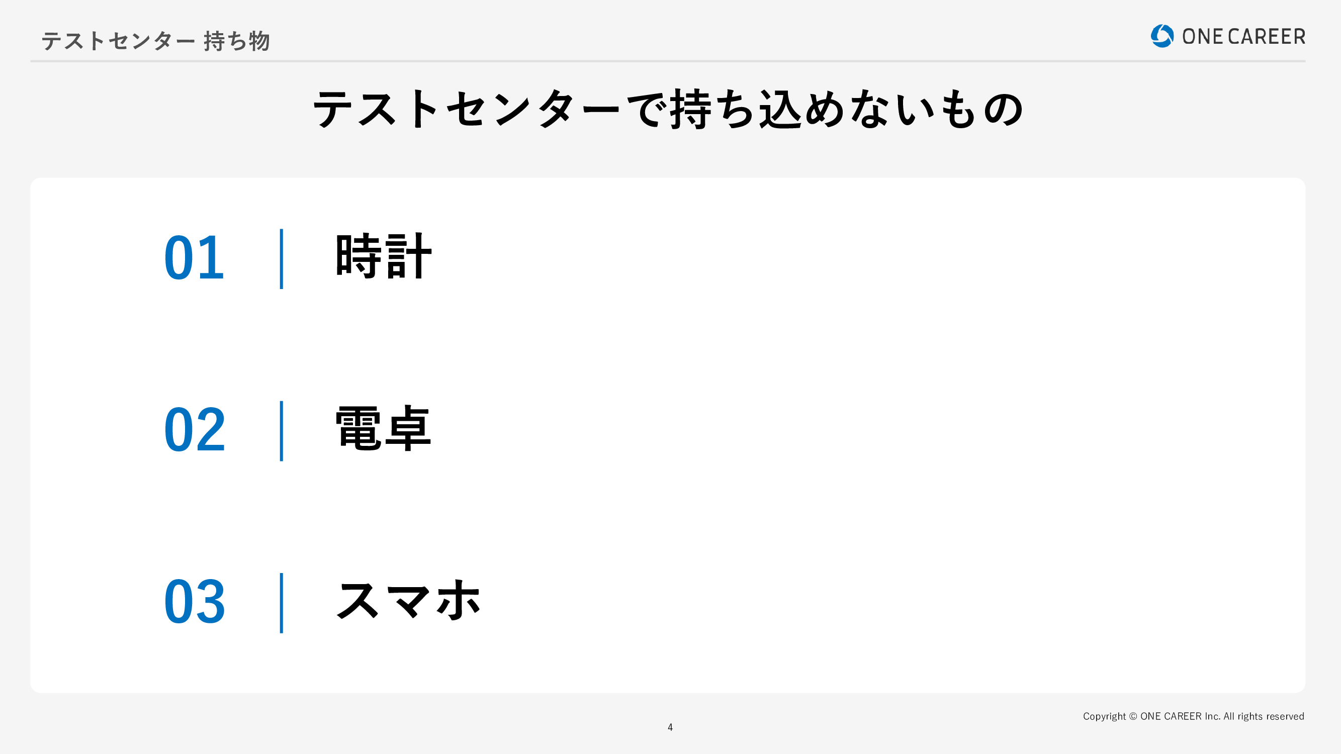 テストセンター受検時の持ち物について、ぜひ参考にしてください。