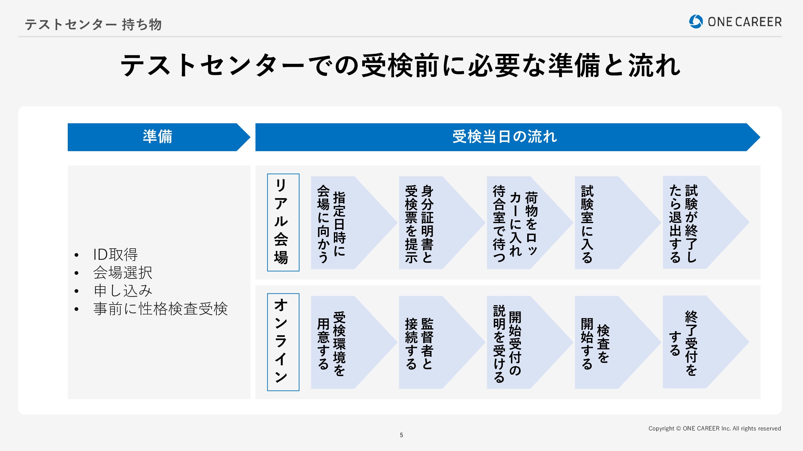 ・ID取得 ・会場選択 ・申し込み ・性格検査受検