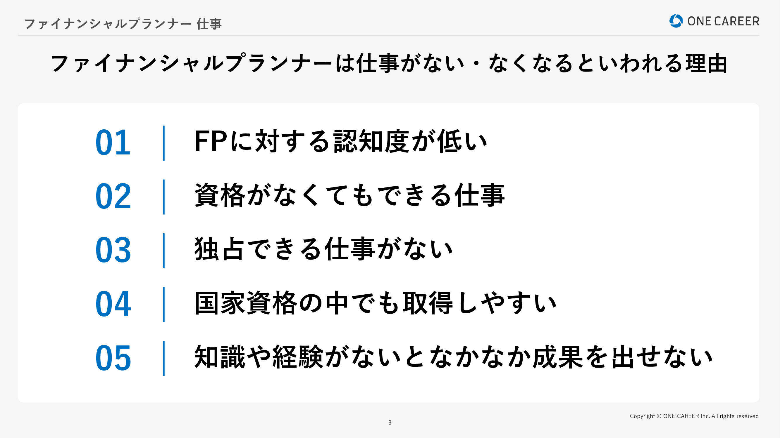 ここから、FPは仕事がない・なくなるといわれる理由をひとつずつ解説します。