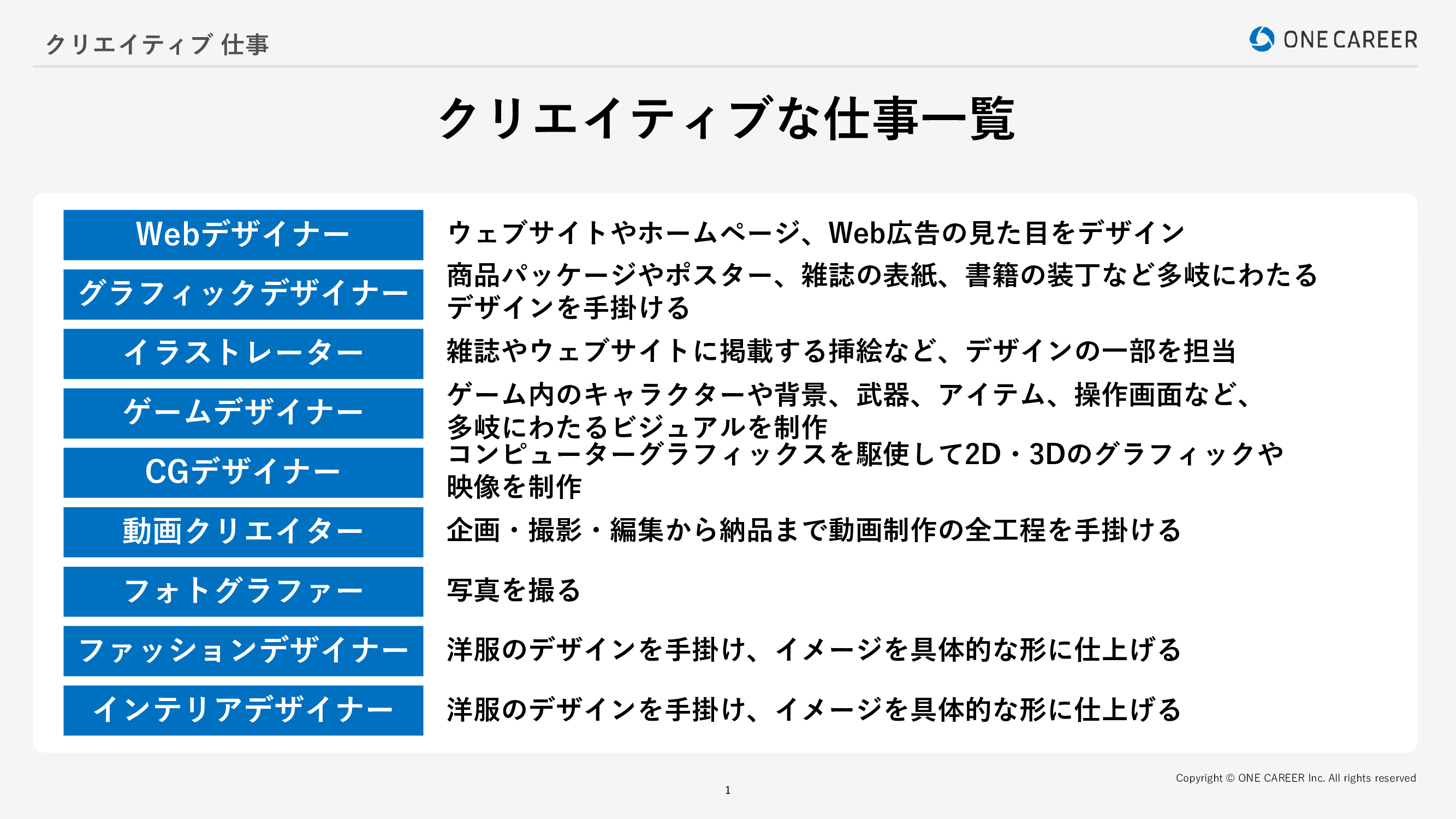 クリエイティブな仕事一覧