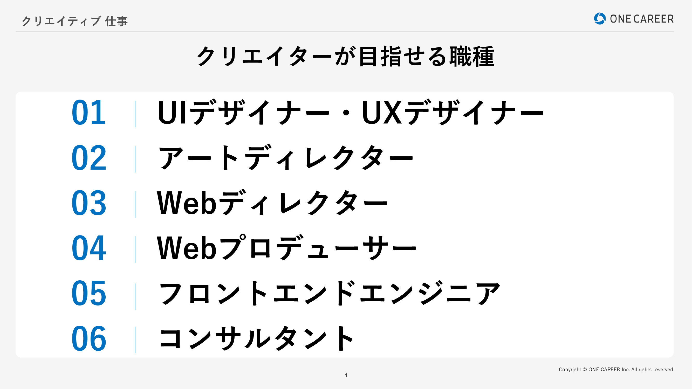 クリエイティブな仕事の主なキャリアパス