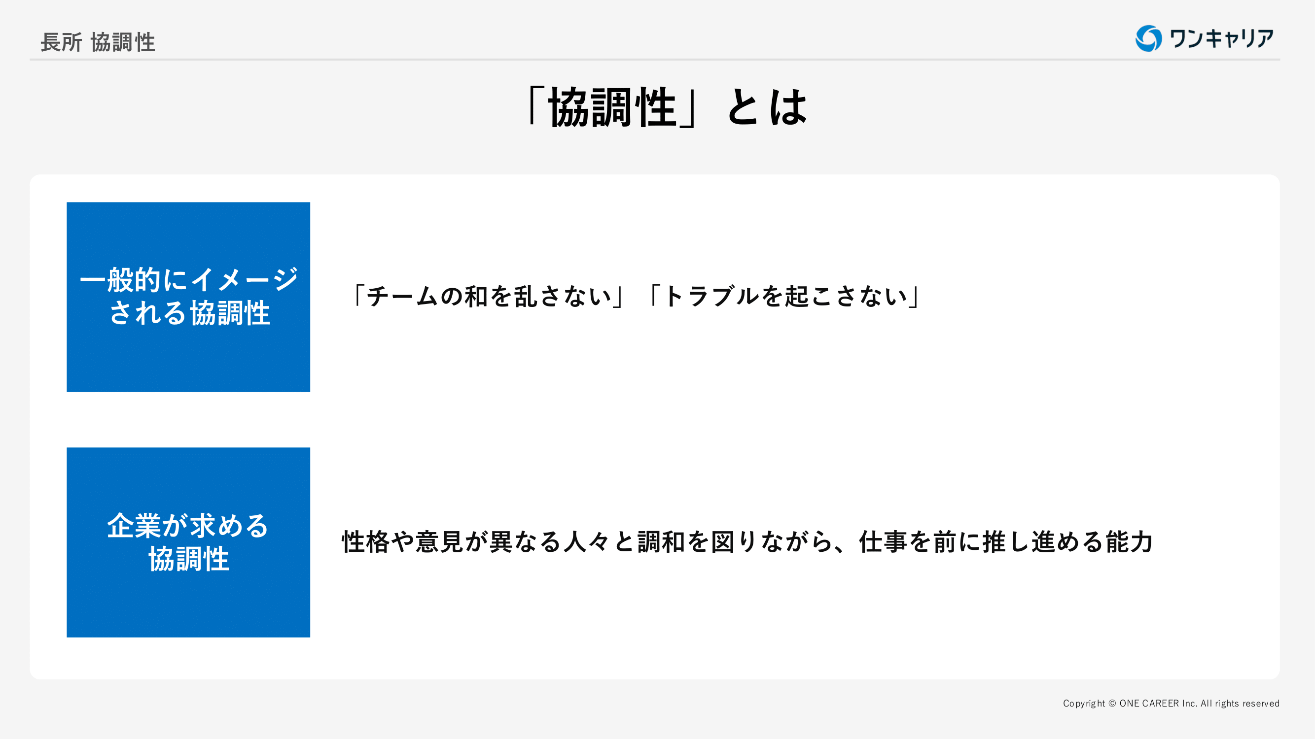 これを考えるために必要なことが、企業が求める協調性とは何かを考えることです。